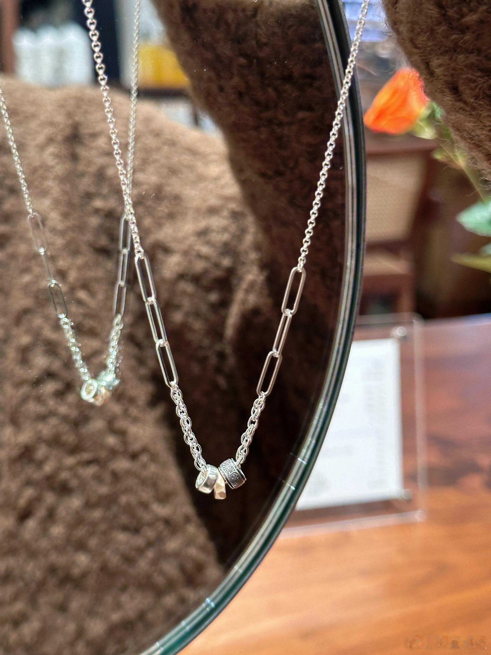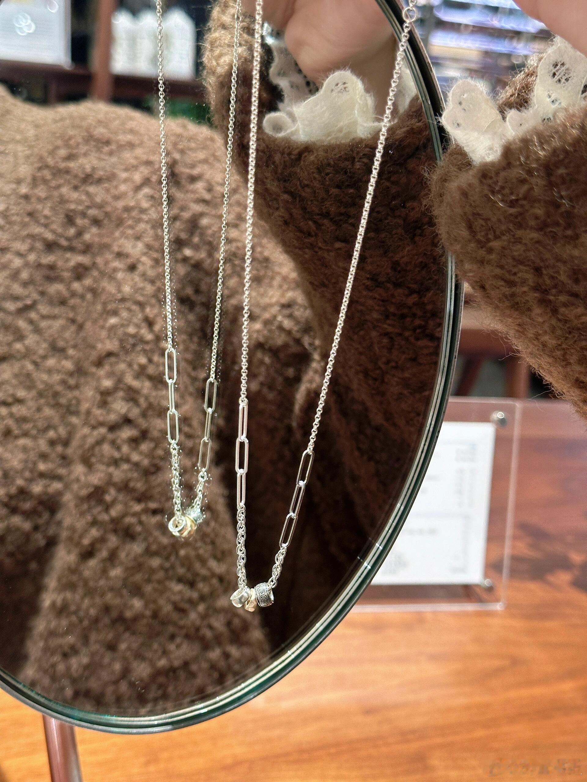 这条来自日本轻奢珠宝品牌agete的项链,以其独特的双珠吊坠设计成为视觉焦点。纤细银链优雅垂落,吊坠由一颗哑光金色与一颗镶满碎钻的深色金属珠紧密串联,材质与光泽的对比极具现代美感。