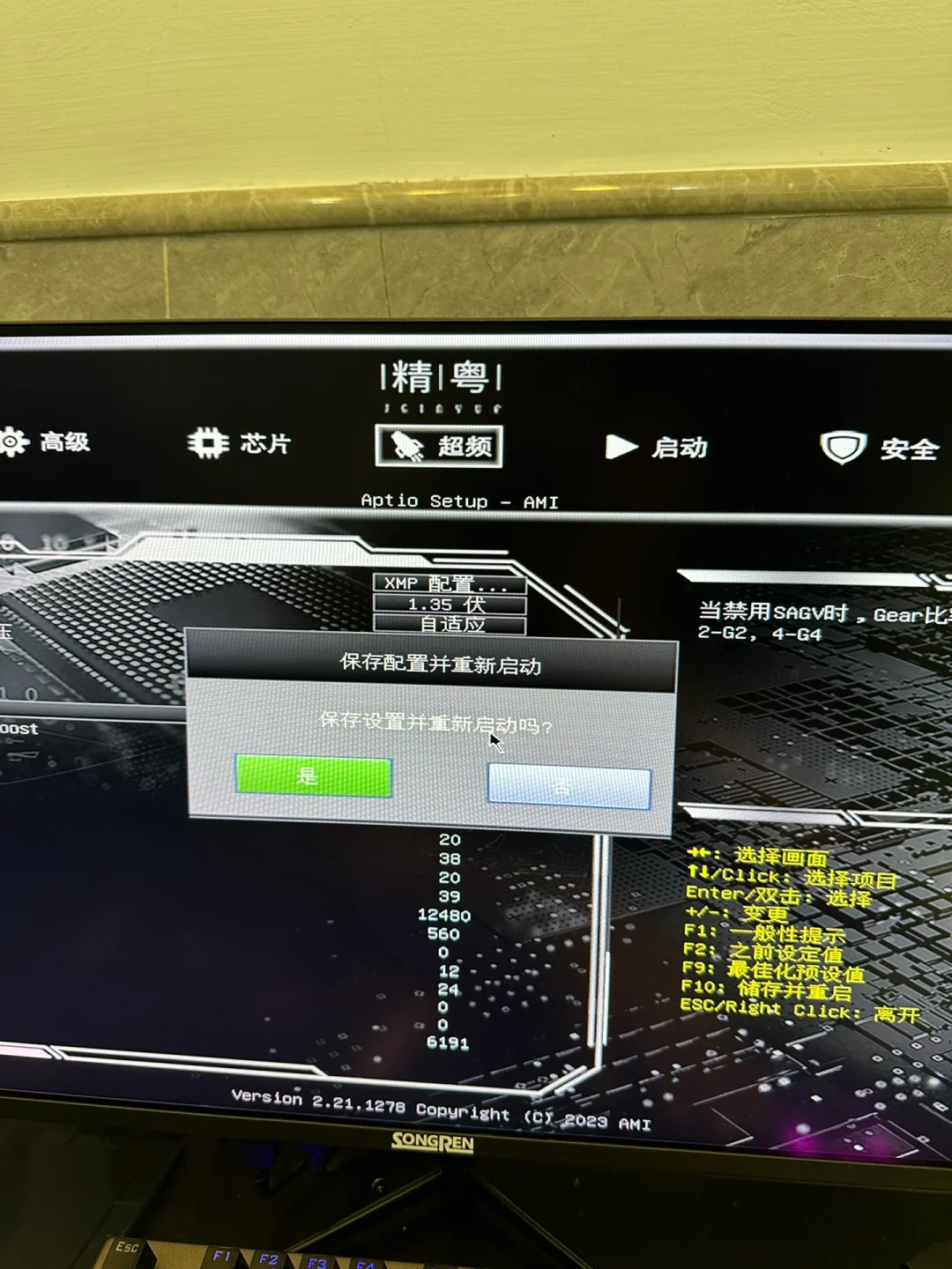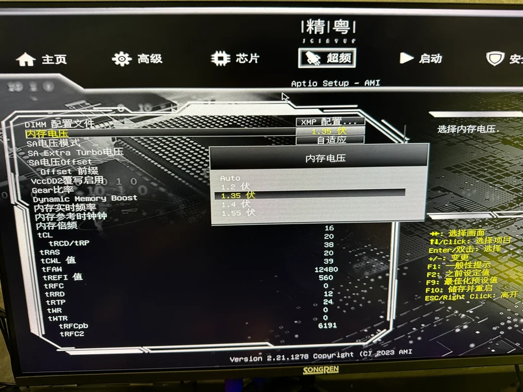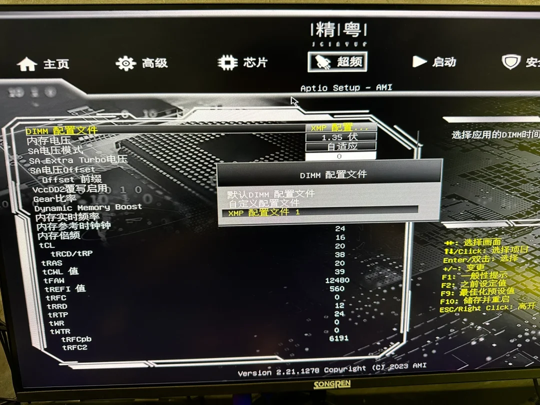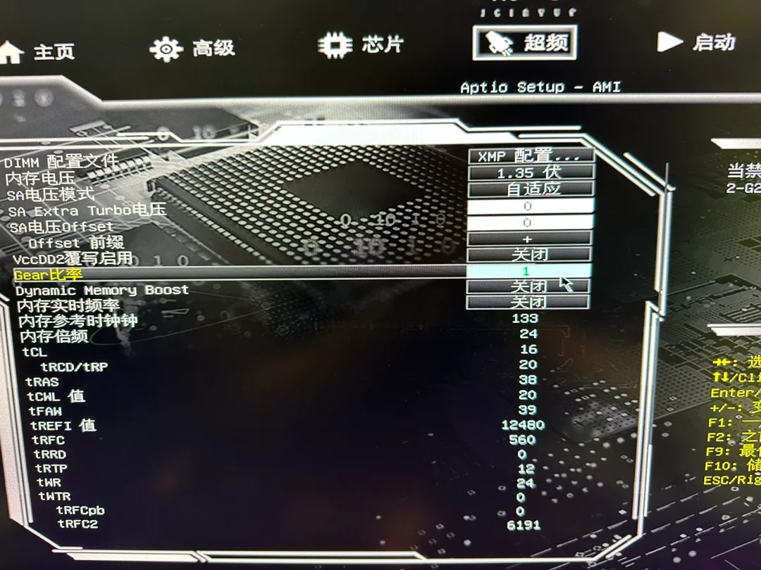 买了3200hz的内存 实际运行速度只有2666hz,浪费了性能,下面教大家如何开启内存XMP,后期会更新其他品牌主板的开启教程 1:按了开机键以后立马按DEL 进入主板设置 2:选择超频-打开超频 3:选择内存超频配置 4:dimm配置文件 选择xmp配置文件1 5:内存电压选择1.35 6:gear比率输入1 7:f10回车保存