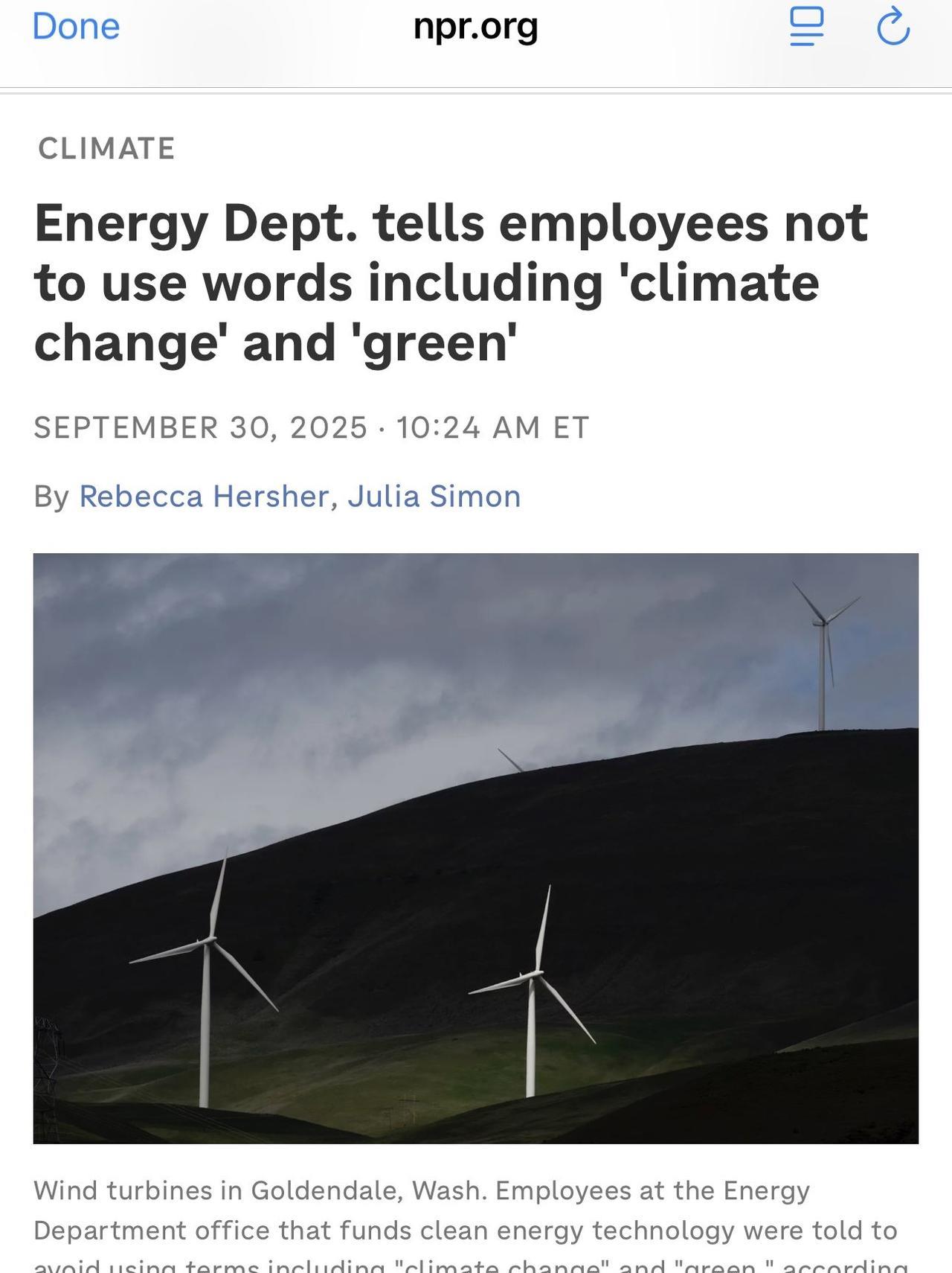 开历史倒车 美国能源部通知员工,禁止在所有的文件、网页使用这些敏感词:“气候变化”、“脱碳”、“清洁能源”、“能源转型”。
