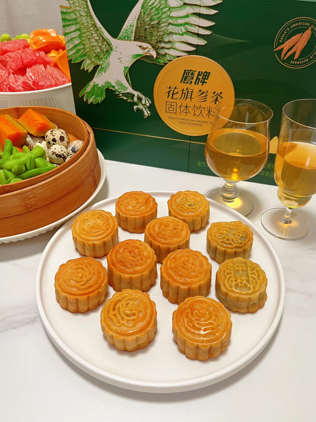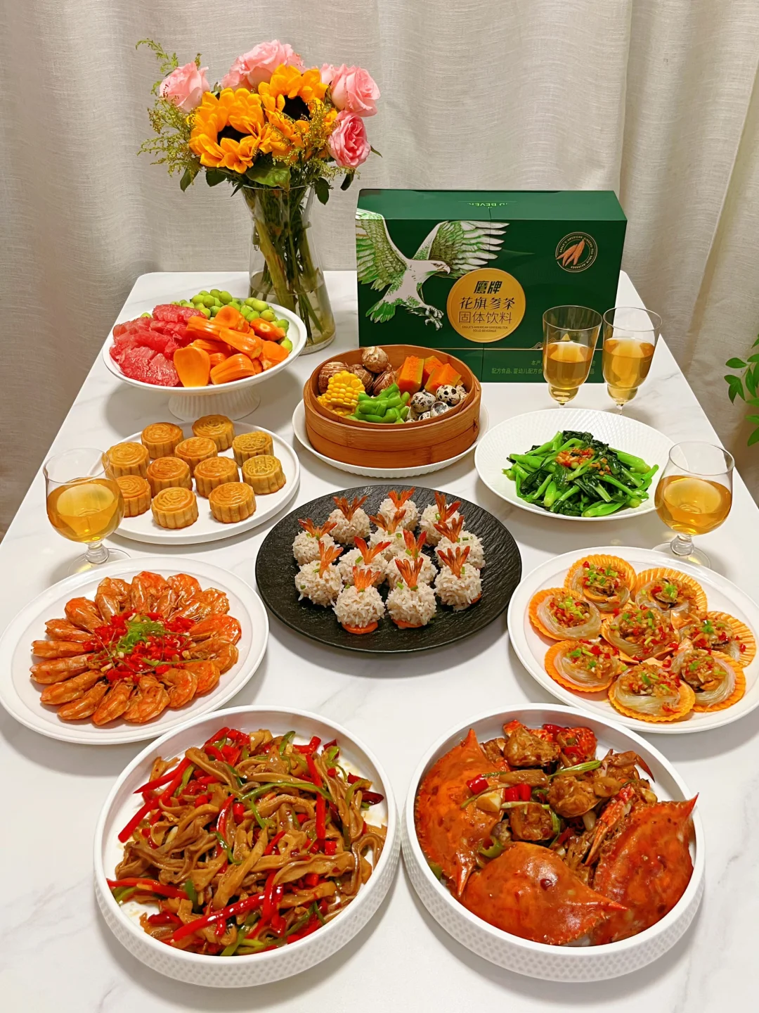 🏮聚餐当然要尽兴,氛围也要拉满,快来get 简单又美味的中秋家宴菜单,节日聚餐开始多起来了,自然少不了饮品,大鱼大肉后来上一杯鹰牌的花旗参茶,瞬间解腻又元气❗️