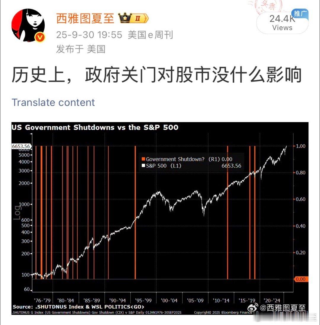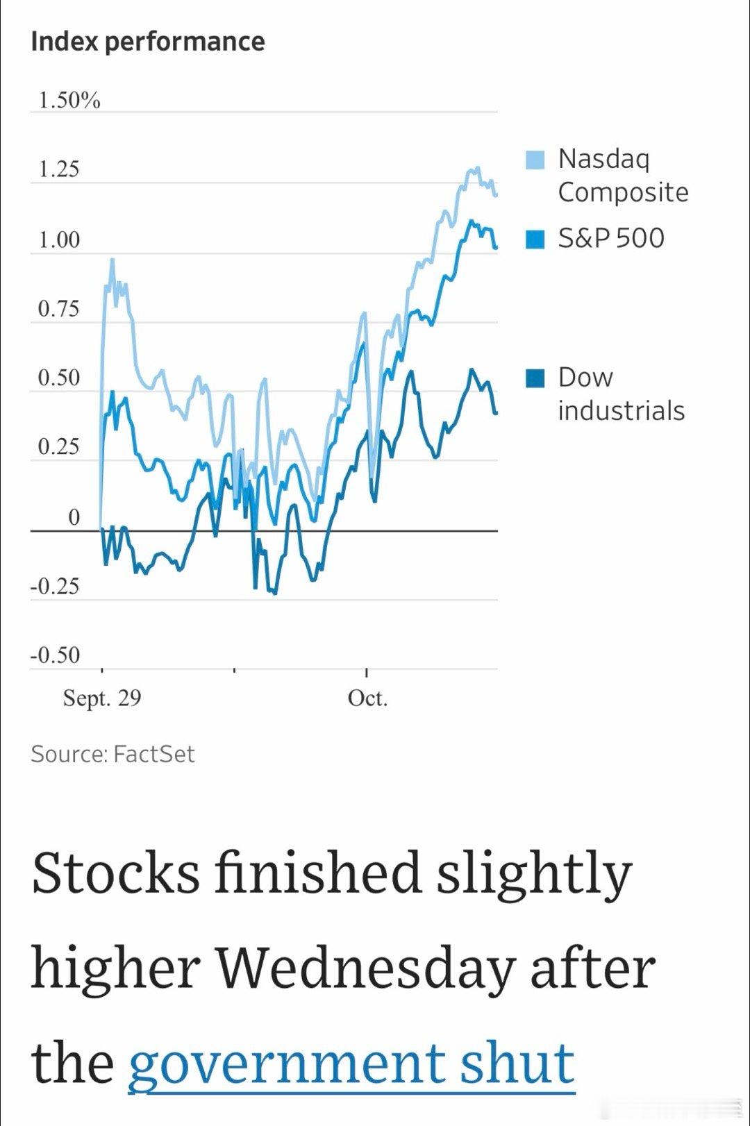 美国政府关门第一天,美股微涨、再创新高与历史规律一致