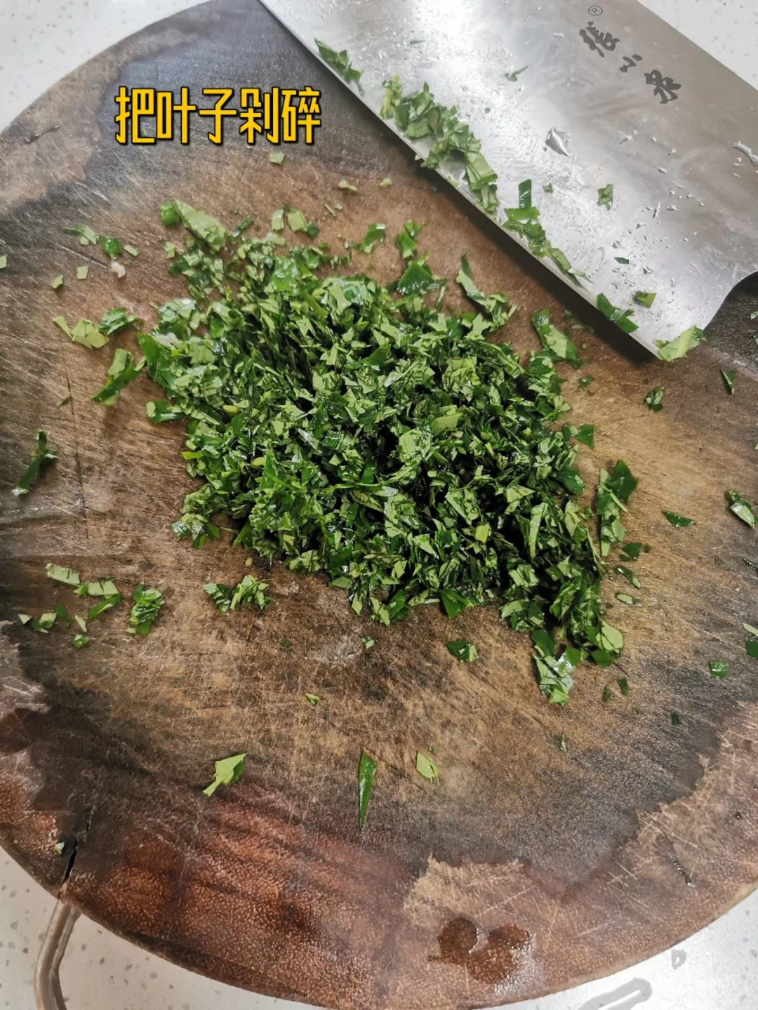 1⃣️、把蛤蒌叶洗净,剁碎。大米放入水里浸泡十五分钟,然后沥干水份备用。
