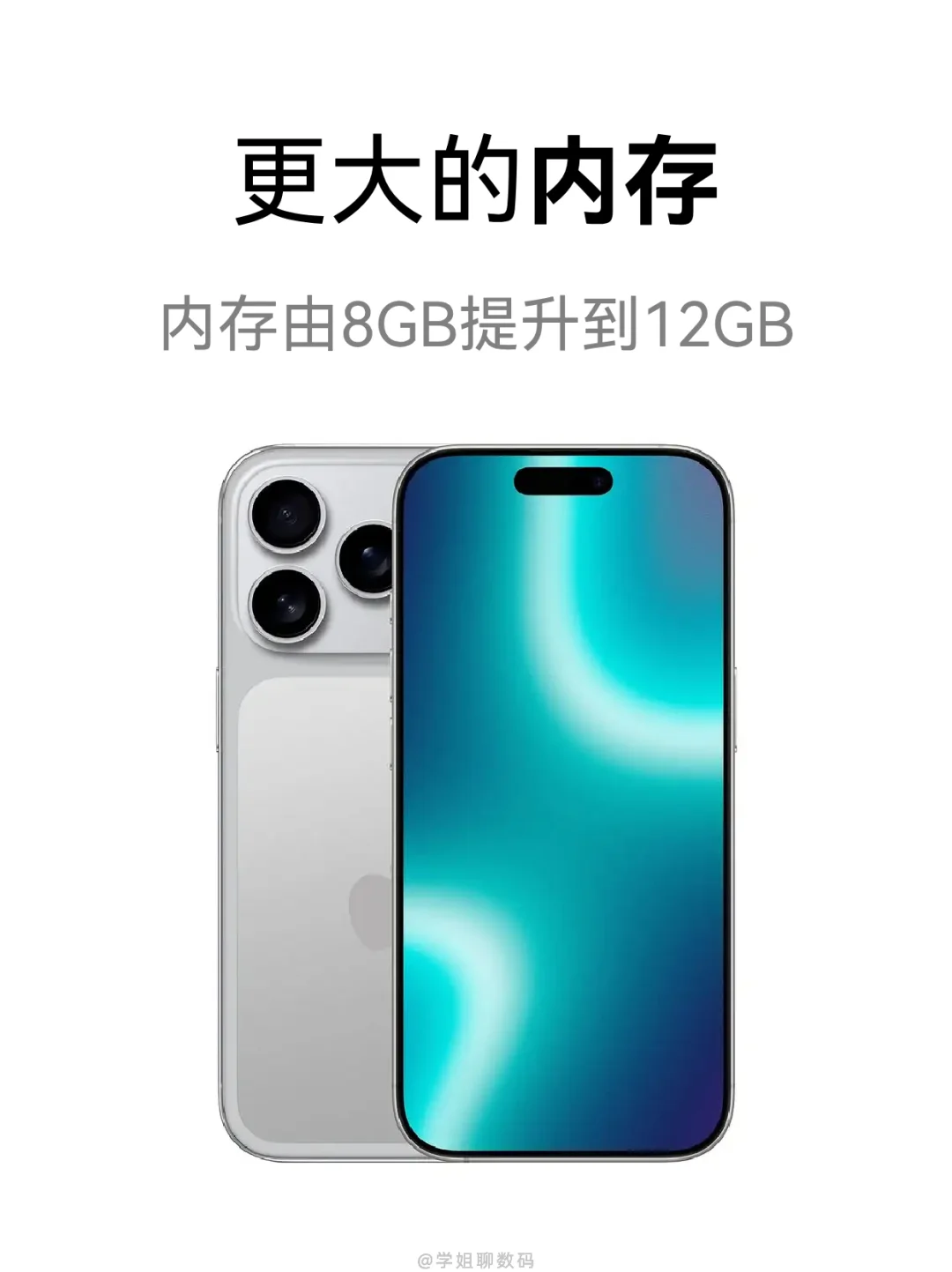 6️⃣ 更大的内存,内存由8GB提升到12GB