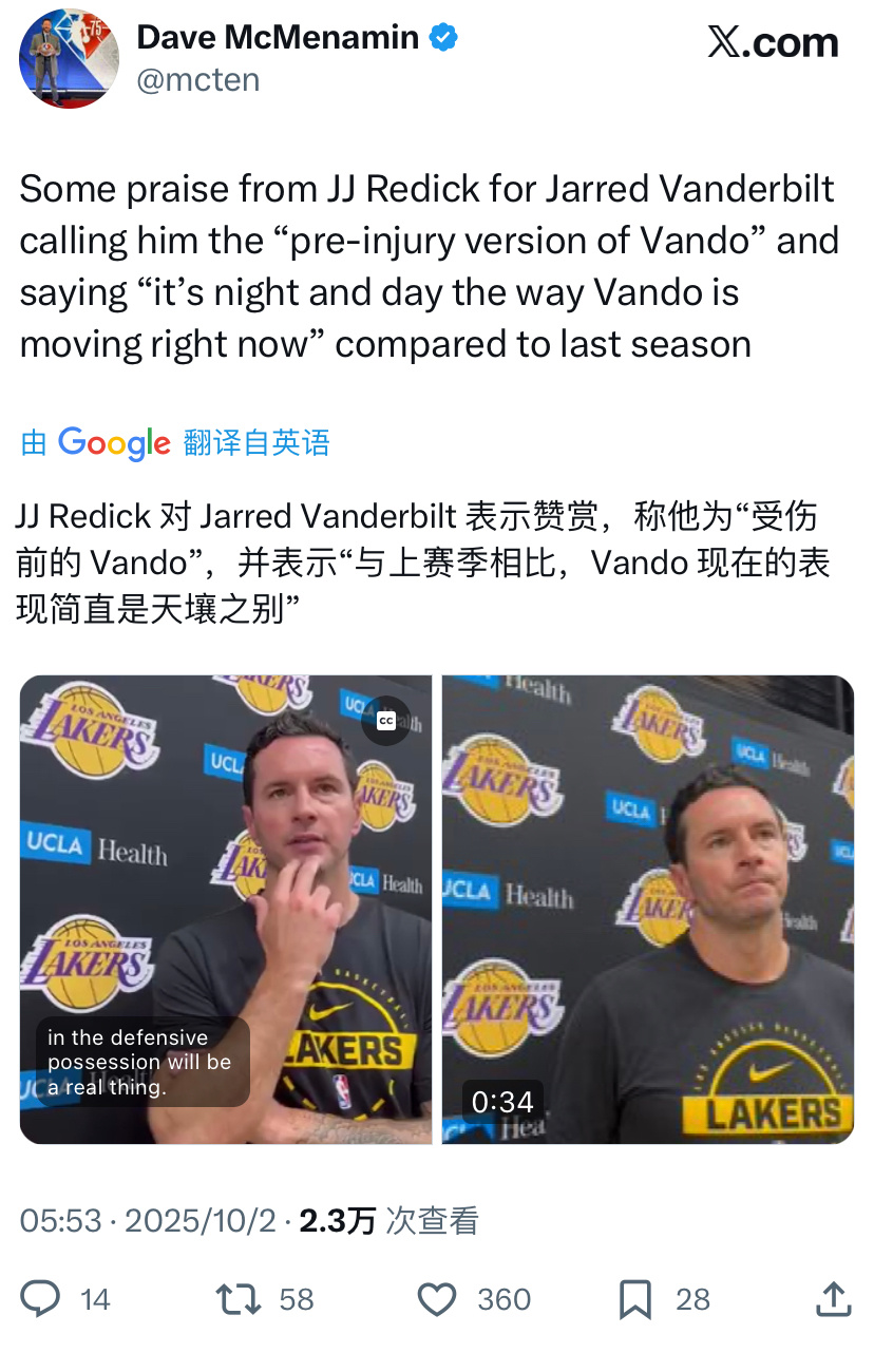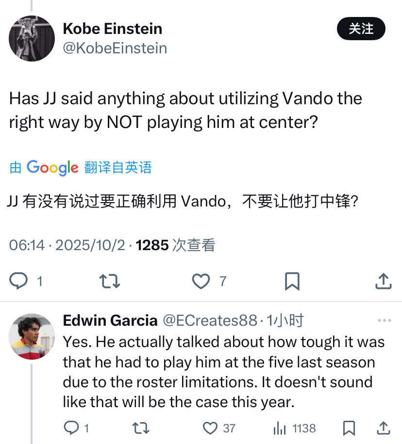 雷迪克确实说过,上赛季由于阵容限制,他不得不让他打五号位,这很艰难。今年的情况似乎不会如此。
