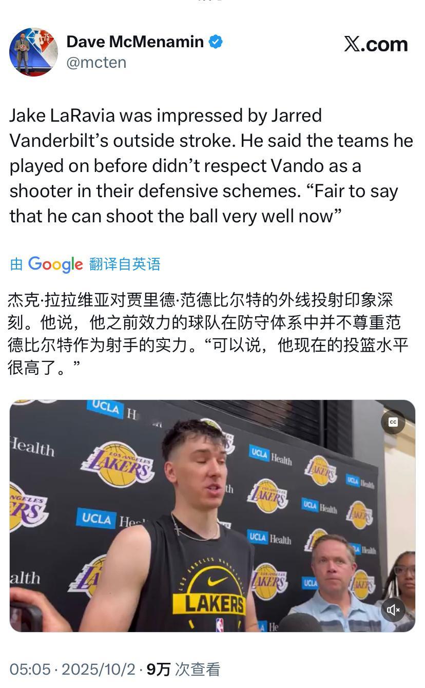 拉拉维亚对彪哥的外线投射印象深刻。他说,他之前效力的球队在防守体系中并不尊重彪哥的投射能力“可以说,他现在的投篮水平很高了。”