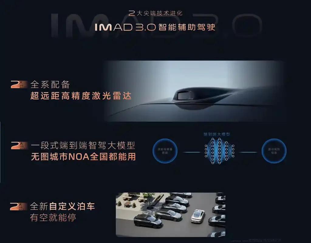 车内搭载IMOS 4.0系统,引入AI Agent交互逻辑,支持语音指令操作。智驾部分采用Momenta方案,IM AD 3.0系统支持无图NOA功能,新增高速ETC通行联动及自定义泊车技术。