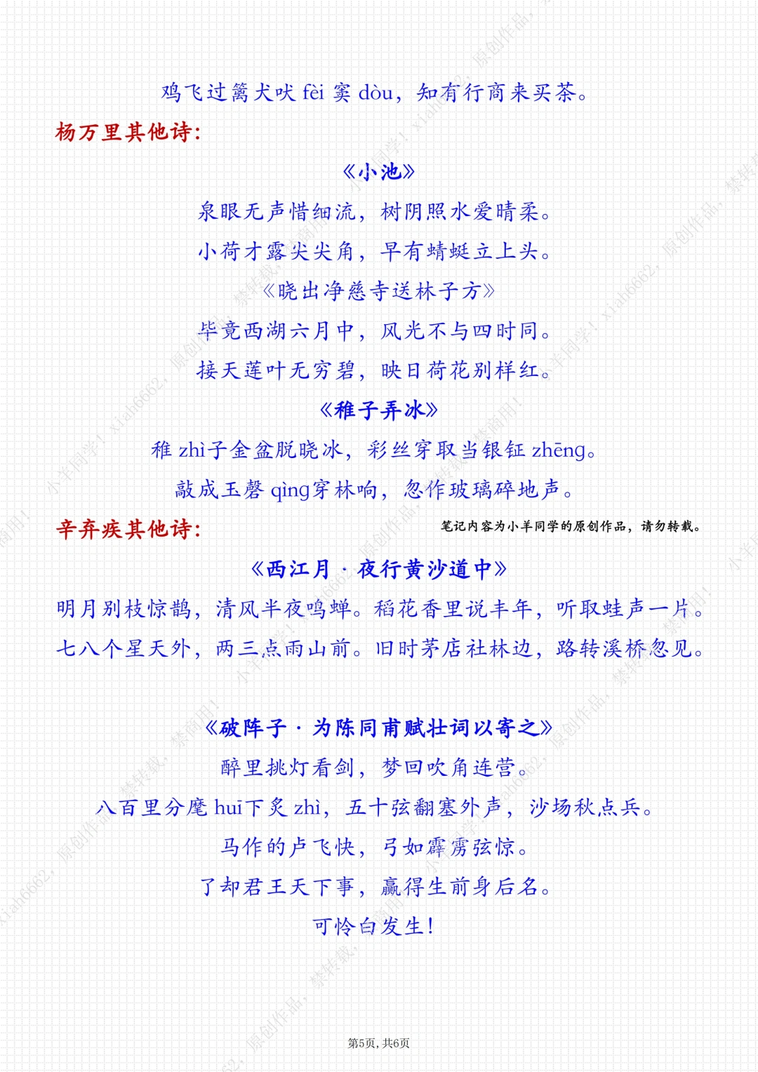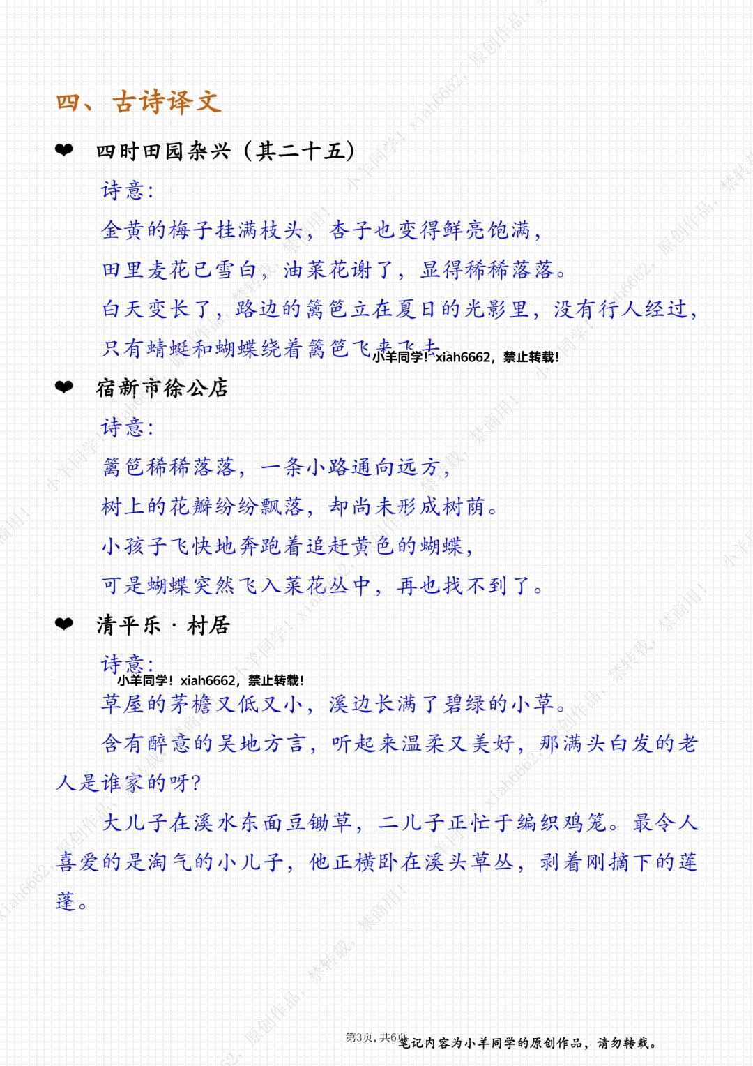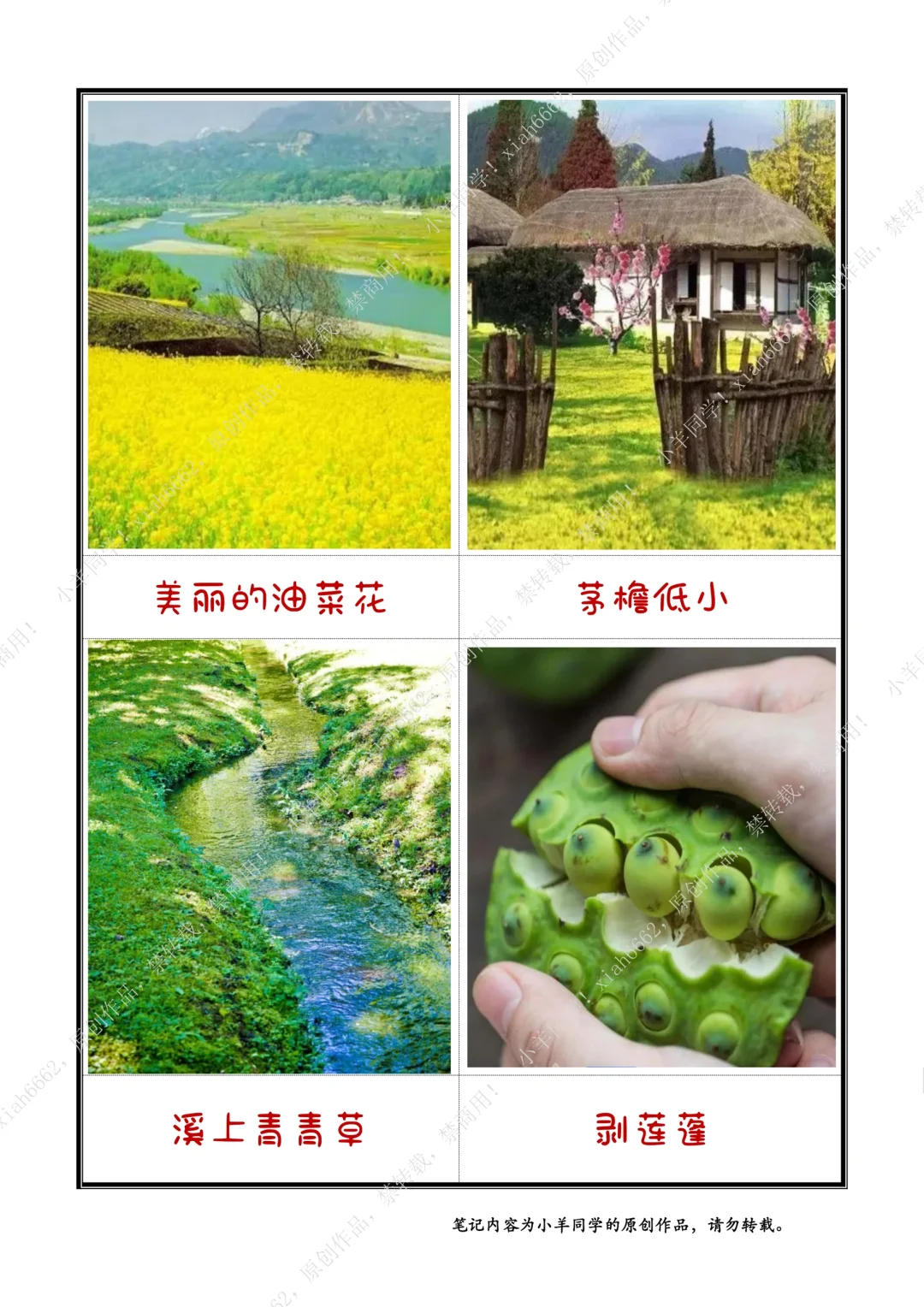 持续更新四下笔记…… 🌲 学习目标: 1️⃣认识“杂、篱”等6个生字,会写“杂、稀”等15个字。 2️⃣有感情地朗读课文,背诵课文。 3️⃣想象画面,能说出诗中描绘的情景。 4️⃣联系插画和注释、联系上下文、联系生活来理解诗词大意,体会作者对乡村生活的喜爱之情。