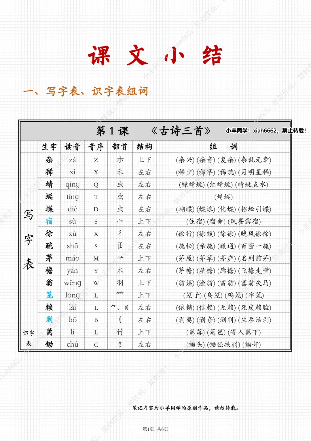 四年级下册🌲第1课《古诗词三首》笔记