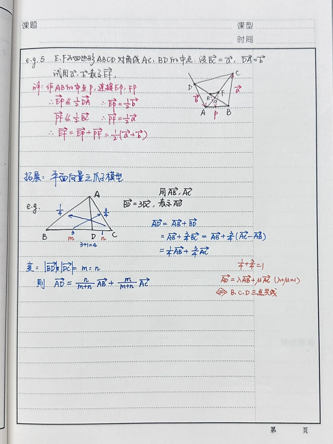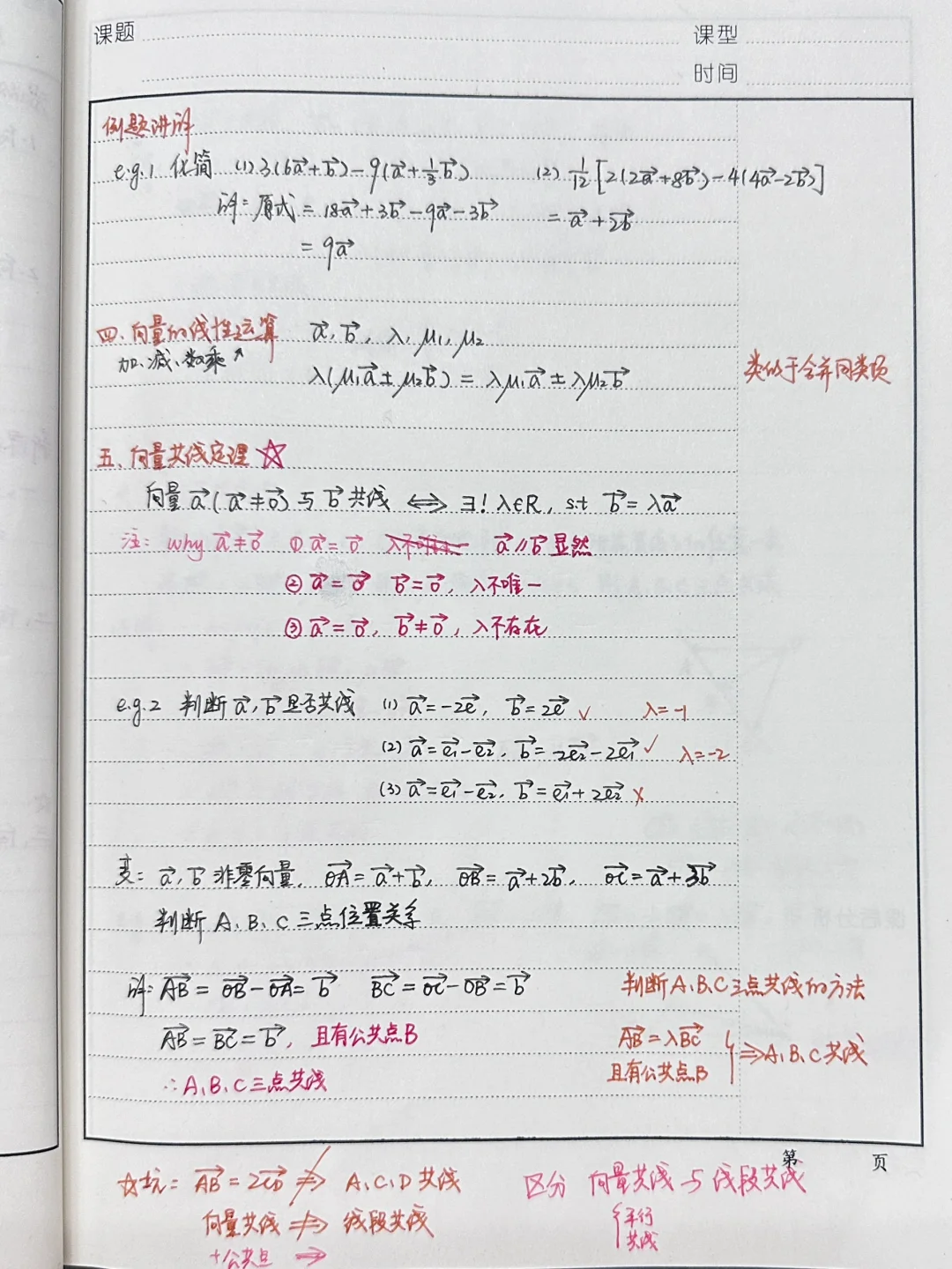 通过实例,掌握向量的数乘运算的定义,并理解其几何意义,以及两个向量共线的含义;掌握共线向量的等价条件,还要注意区分向量共线和线段共线。 最后讲一下爪子模型的应用,快速解题。
