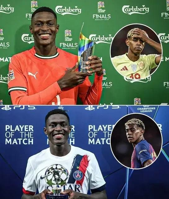 努诺·门德斯与亚马尔的两次对决发生在在欧国联决赛和本场欧冠比赛中