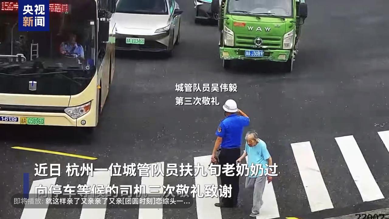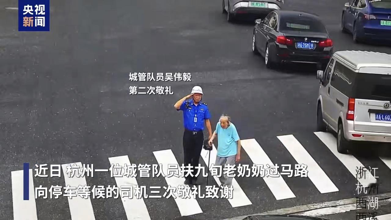 给城管点赞,给司机们点赞,让这一幕“双向奔赴”传递下去,近日浙江杭州,退伍军人出身的城管吴伟毅在辖区巡逻时,看到一老奶奶拄着拐行动缓慢的过马路,吴伟毅看到后主动上前陪同,可刚走了一半车辆通行的灯就从红灯变绿灯了,这时车辆并没有催促、没有鸣笛、都纷纷停下,等待老奶奶过马路,吴伟毅看到车辆纷纷礼让,在过马路的这15秒里,朝司机们三次敬礼致谢,公交车司机也挥手回礼! 之后吴伟毅联系了派出所,转交给了民警才放心离开,然后民警将其平安送回家,据了解老奶奶今年已经96岁了,当天独自一人出门买药,之后迷了路,之后老奶奶的女儿对每一位好心人表示感谢,为他们点赞! 而这一幕双向奔赴,诠释了城市了温度,虽短暂,但充满了人文关怀,更是一座城市最动人的风景,不管是城管还是司机,他们的行动正是对和谐社会最生动的注解,如果人人都献出一点爱,世界将变成美好人间!