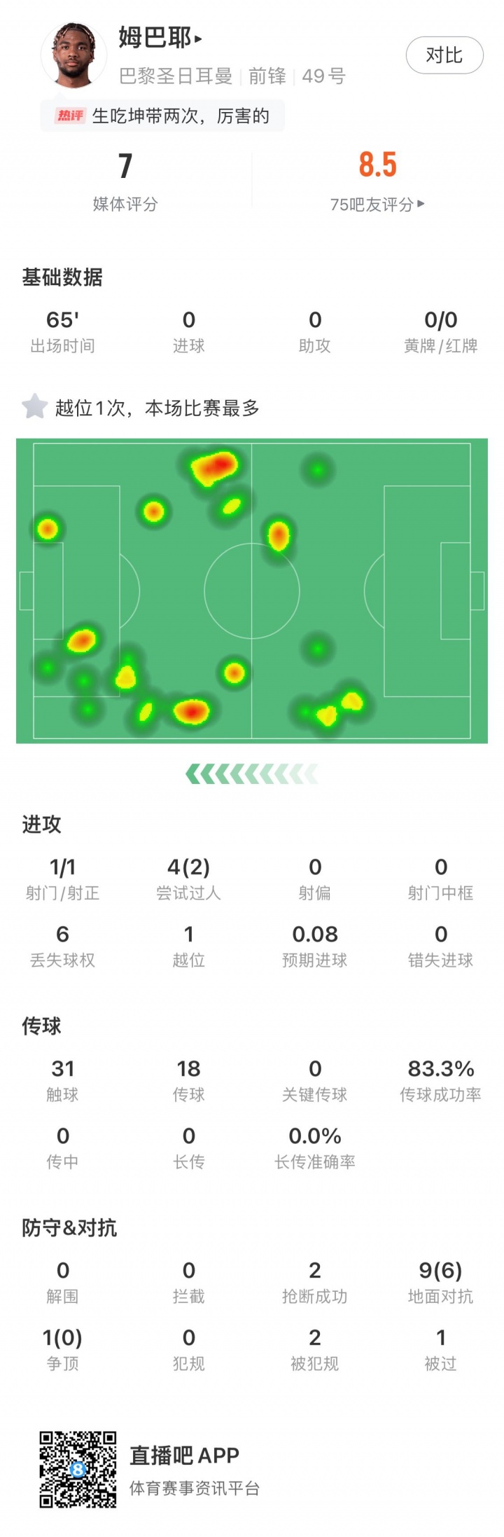三人总身价合计8800万欧,不及亚马尔(2亿欧)的一半。身价最低的姆巴耶年仅17岁,在比赛中生吃孔德。