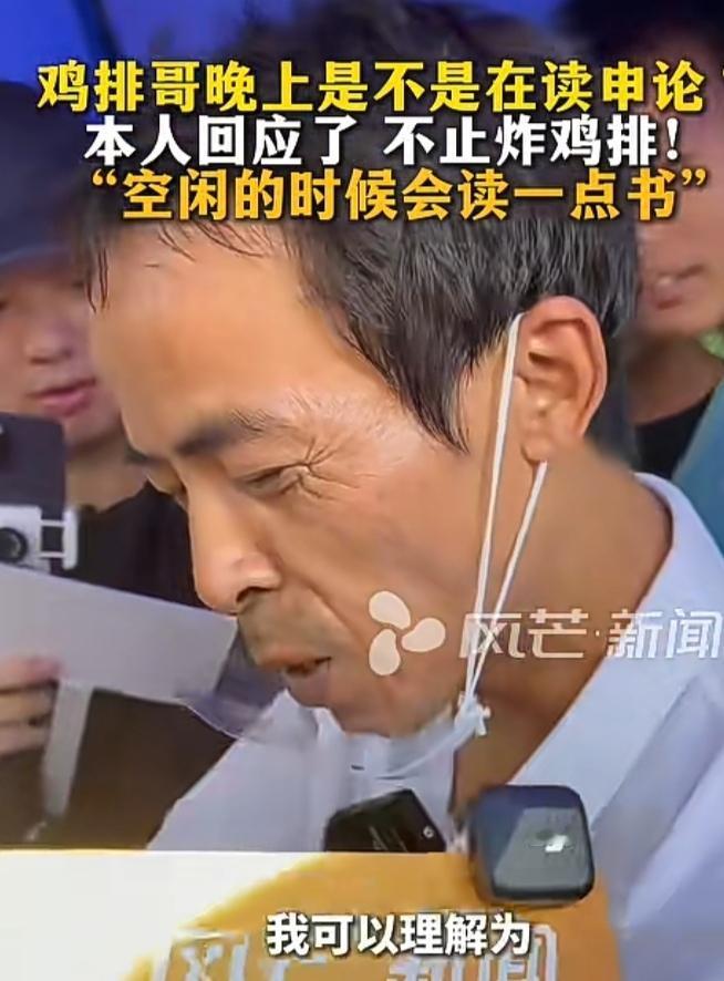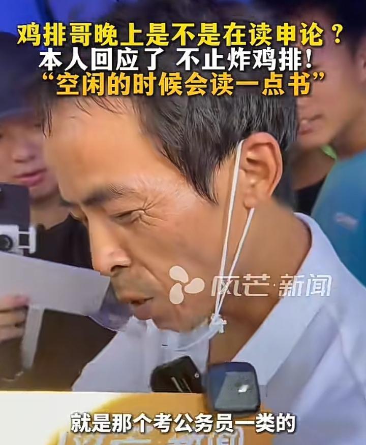 万万没想到。 当记者说出一个非常专业且覆盖率不太高的词汇时,所有人都惊愕甚至不知道它的具体意思,在鸡排哥的简单回答中可以理解到他其实很不简单。 记者问晚上有没有读申论,他憨憨一笑没有立即回答,记者以为他不知道申论是具体涵盖那些方面,而鸡排哥的解释不仅专业而且通俗易懂,可能这就是区别于其它小吃摊的因素,对于申论他理解为就是考公务员之类的书籍,试问在小吃摊的领域你去问10个摊主,他们根本无法解释申论到底什么意思,一个人的成功没有表面那么简单,除了不懈的坚持,还有诚信要知道鸡排哥下岗那会也是非常迷茫,做烤羊肉串.卖凉皮.酱香饼.最后才在鸡排的领域发光发热,可这十几年的坚持才是他出类拔萃的原因之一,他的座右铭做了不一定成功,可是不做一定失败,这种概念性思维跟老板思维不谋而合,俗语福在术而他勤劳的同时,在思维上的升腾依然让人愕然,纸上得来终觉浅,看别人总以为很简单,当自己去做的时候就不知所措,这也许就是眼高手低的最真实写照,如果有一天变成手高眼高那么你除了成功就是荣耀加身了。