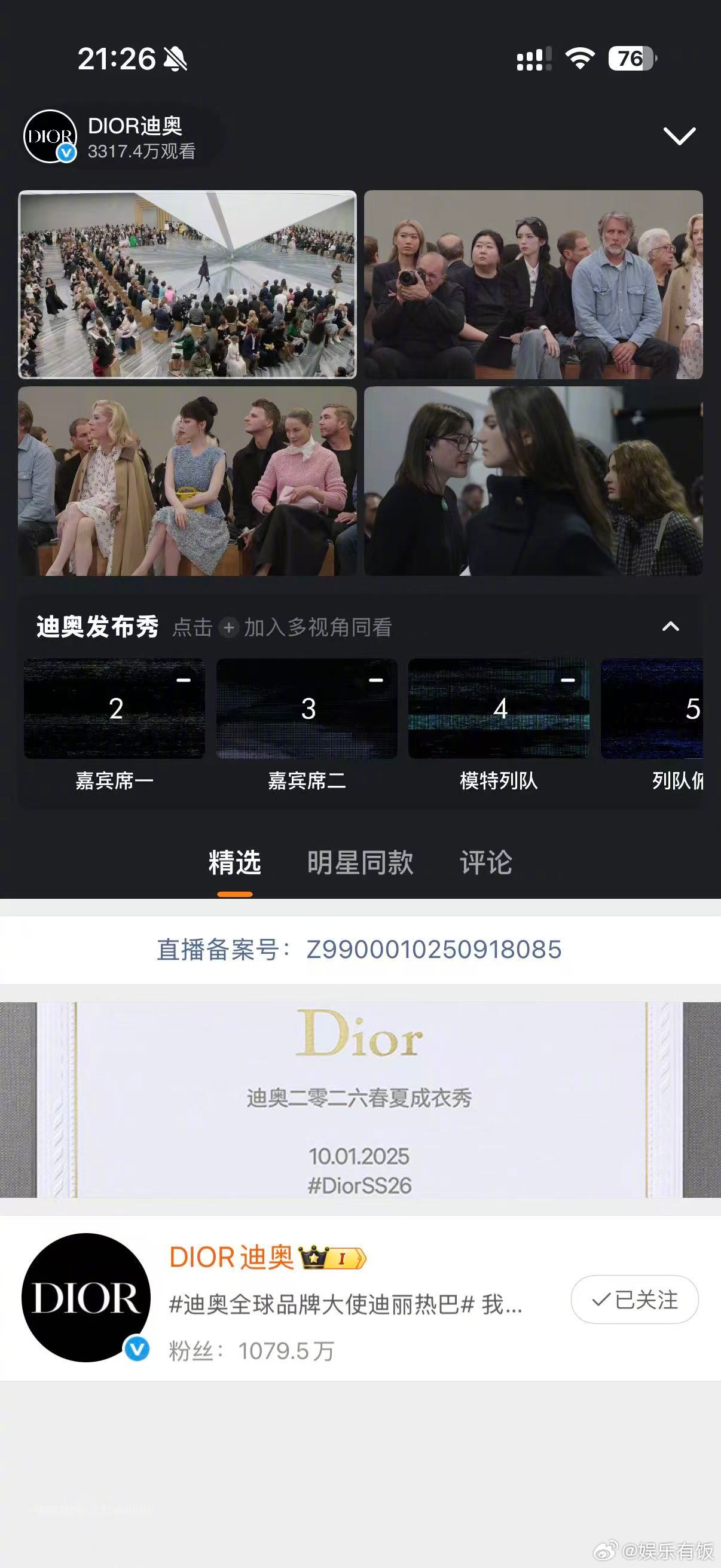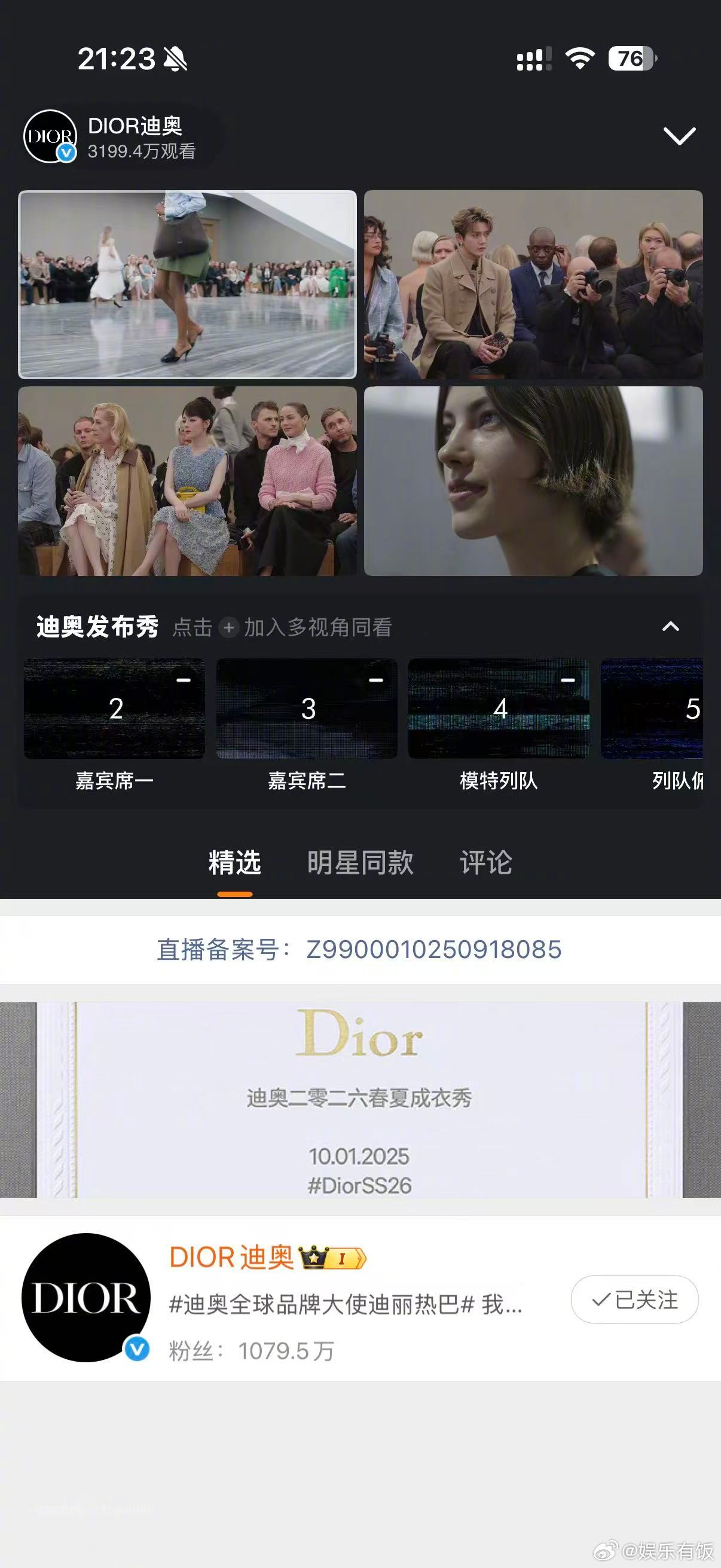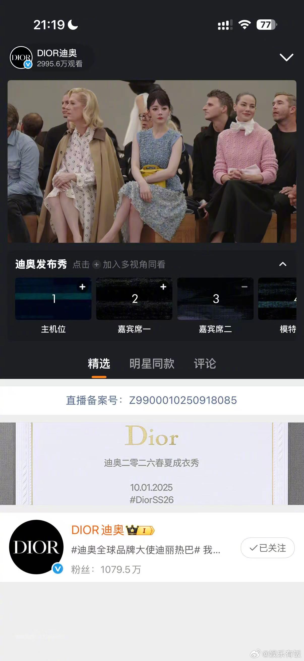 Dior多机位带你全方位看秀星光闪耀巴黎!迪丽热巴、邓为、周也齐聚秀场,每位都