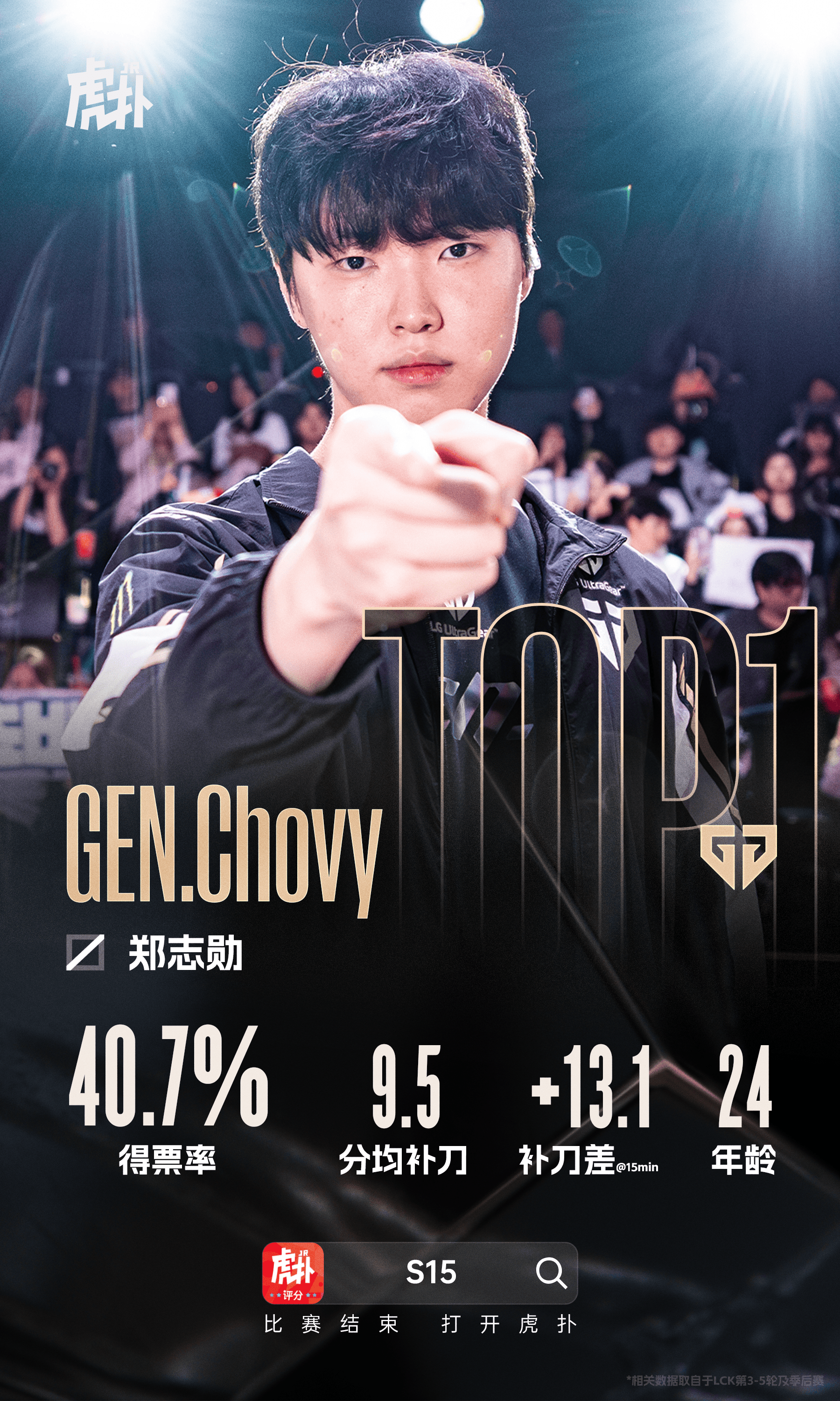 虎扑TOP20首日评选结果:Chovy当选TOP1选手