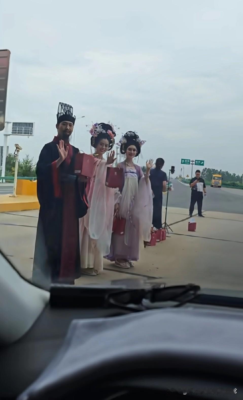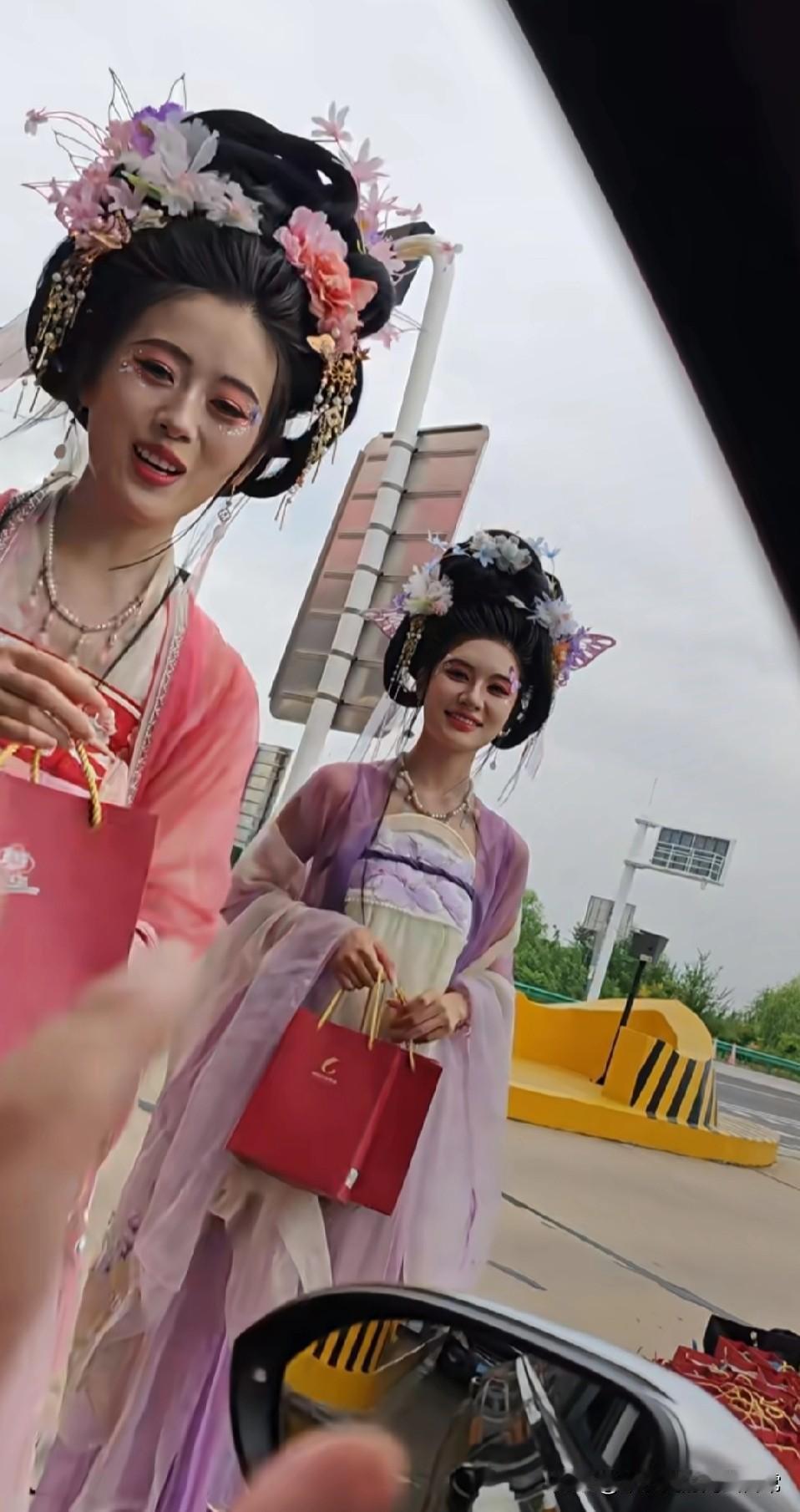 高速惊现“爱妃团”接驾! 高速收费站撞见一群“古代爱妃”和“大臣”迎客,穿着华丽汉服对你笑盈盈,手里还拎着伴手礼,这场景谁看了不懵圈?车主直呼“这哪是下高速,分明是穿越回后宫被接驾!” 有人狂赞“太会玩了,枯燥的高速秒变古装剧现场”,有人吐槽“花里胡哨,不如多开几个收费口实在”。可这波“汉服迎客”操作,是文旅宣传的神来之笔,还是为了博眼球的尬操作? 当高速收费站玩起“穿越梗”,是创意满分还是用力过猛?你要是遇上这阵仗,是觉得惊喜拉满,还是想赶紧加速逃离?