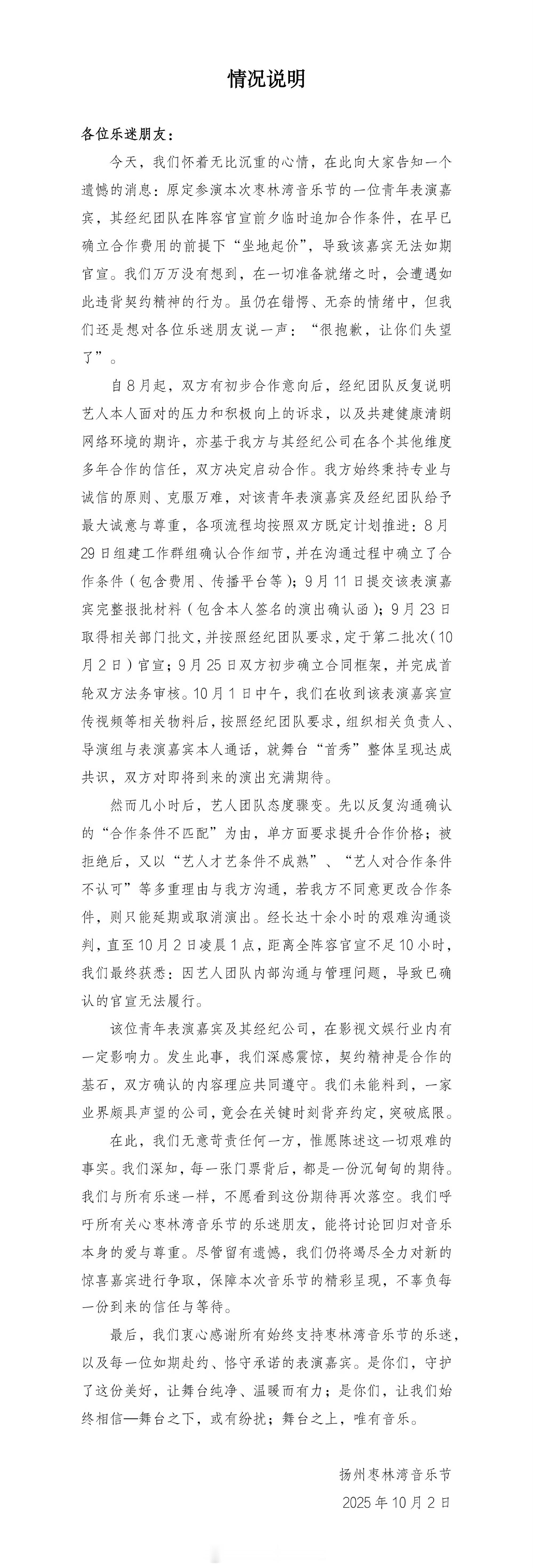 艺人音乐节坐地起价后续,主办方在评论区回复了网友,这算是明说了吧……​​​