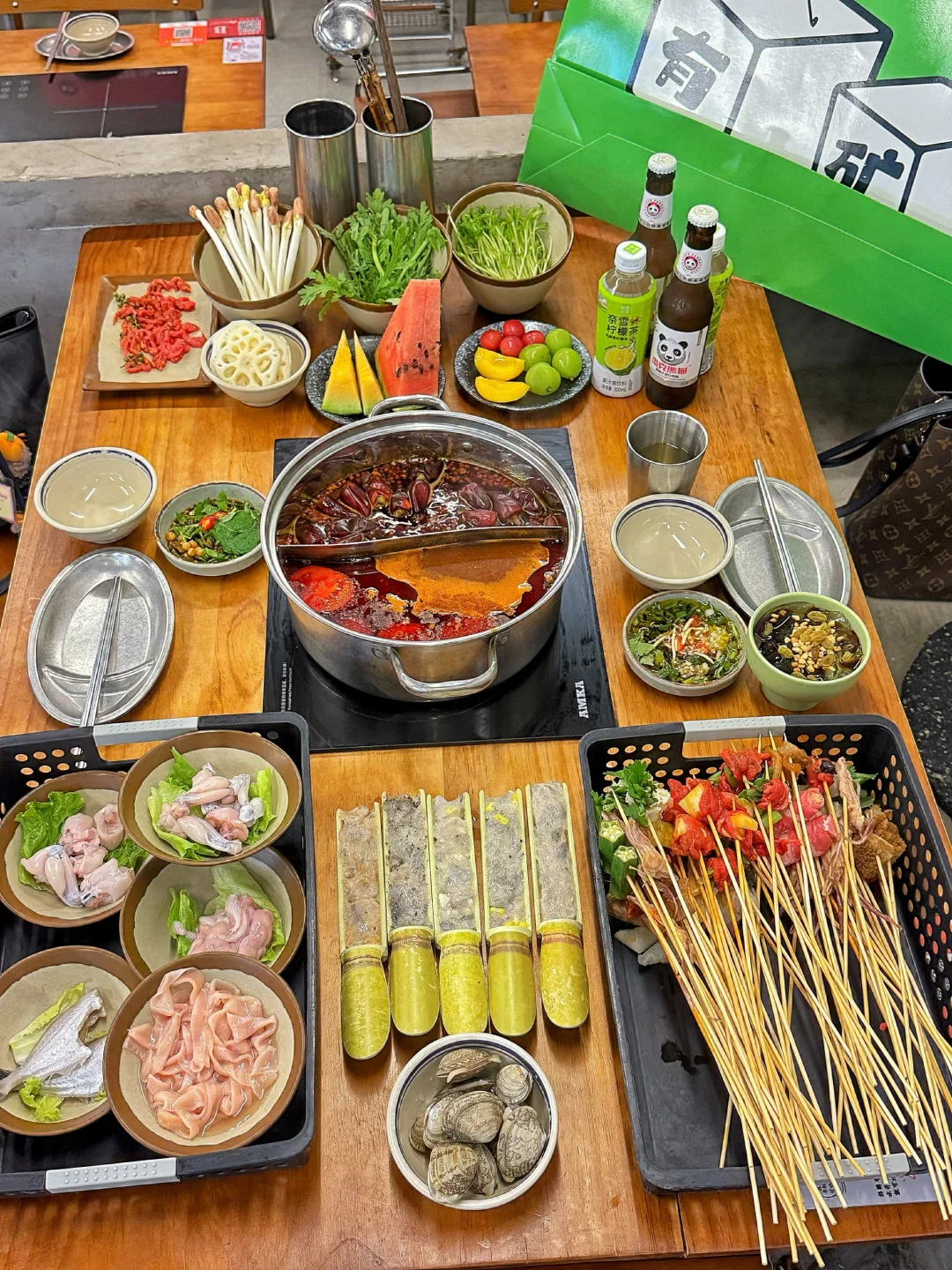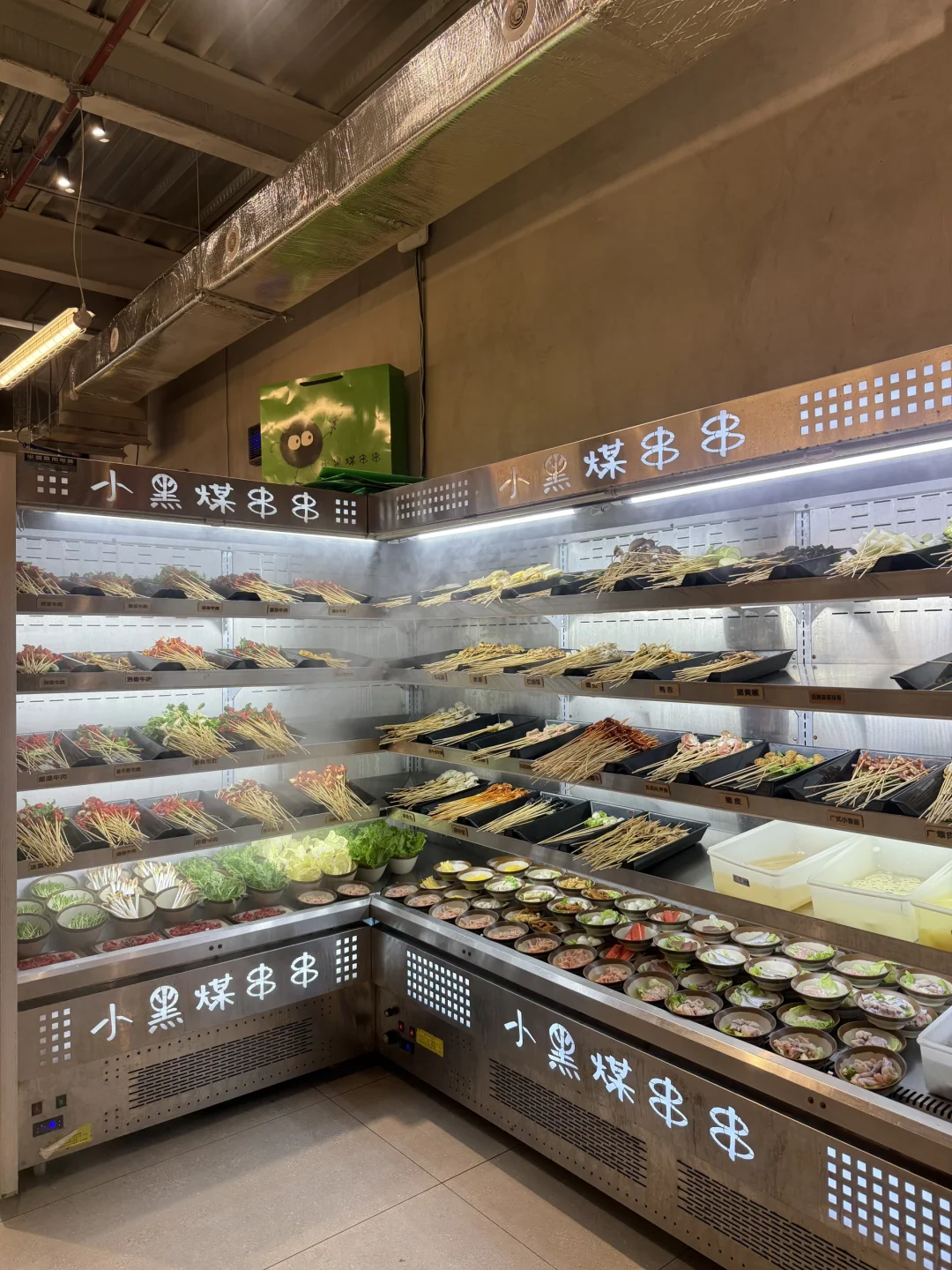 核心自助区直接封神!几十种串串整齐码放,20+款牛肉串是顶流,薄荷牛肉清冽解腻、泡椒牛肉鲜辣够劲,每一串都肉量扎实。饮料区从碳酸饮品到果汁、凉茶,啤酒全覆盖,冰爽畅饮不限量,吃辣星人狂喜。
