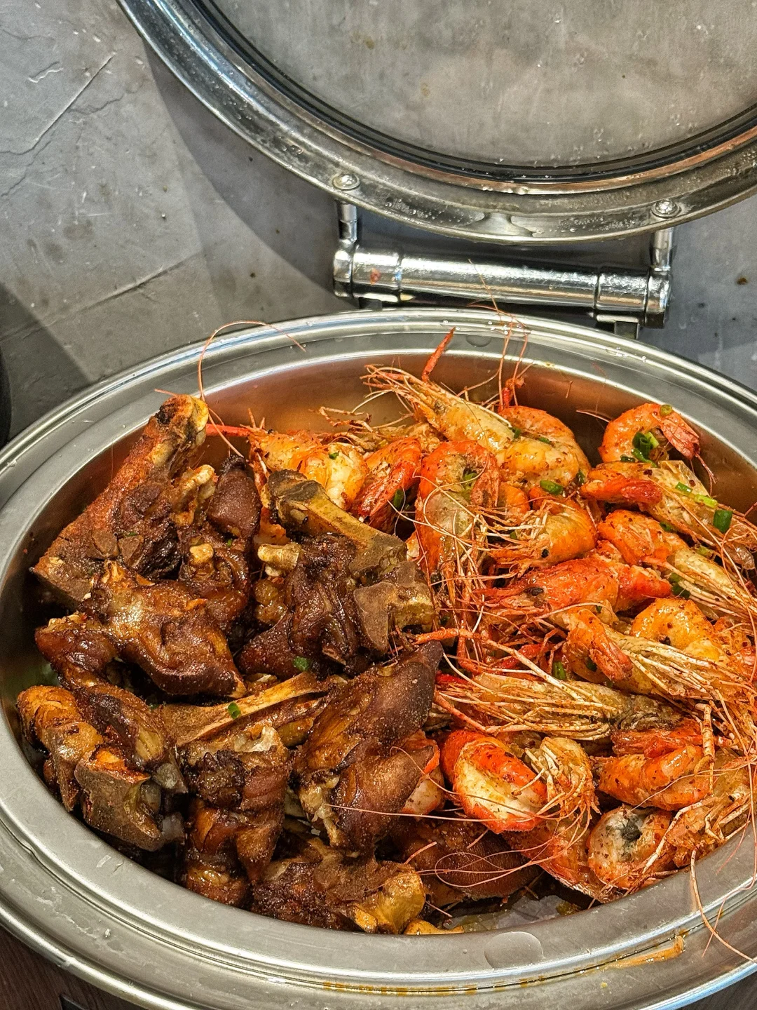 椒盐罗氏虾~现点现炸,外壳酥到能直接嚼,内里虾肉Q弹爆汁,咸香中带着椒香,一口一个停不下来。