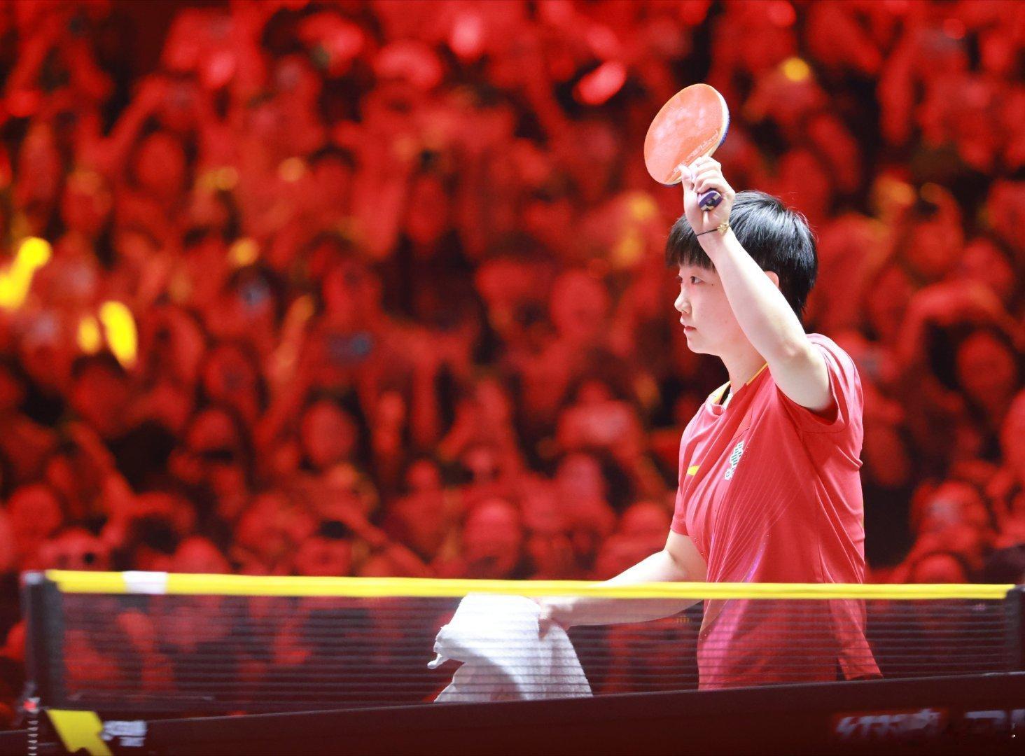 孙颖莎晋级中国大满贯8强全场高呼:“孙颖莎,我爱你!”(白宇摄)