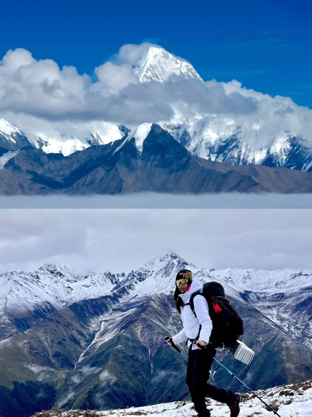 我忽然想起自己人生中的第一座雪山是去年在爬贡嘎山脊线的时,突遇暴风雨、冰雹,头灯的微光在雪地上摇曳,只能听见自己的呼吸和心跳。摘下雪镜那刻 发现蜕变的不仅是体能还有在困难里咬牙的坚持。