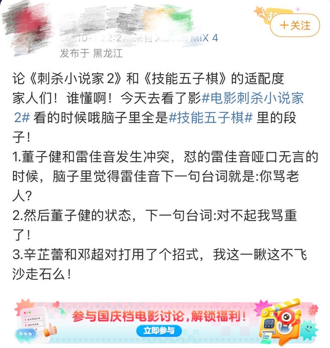 刺小2给我一种技能五子棋的感觉造浪吧国庆档影片的技能设计藏着五子棋逻辑!每个角