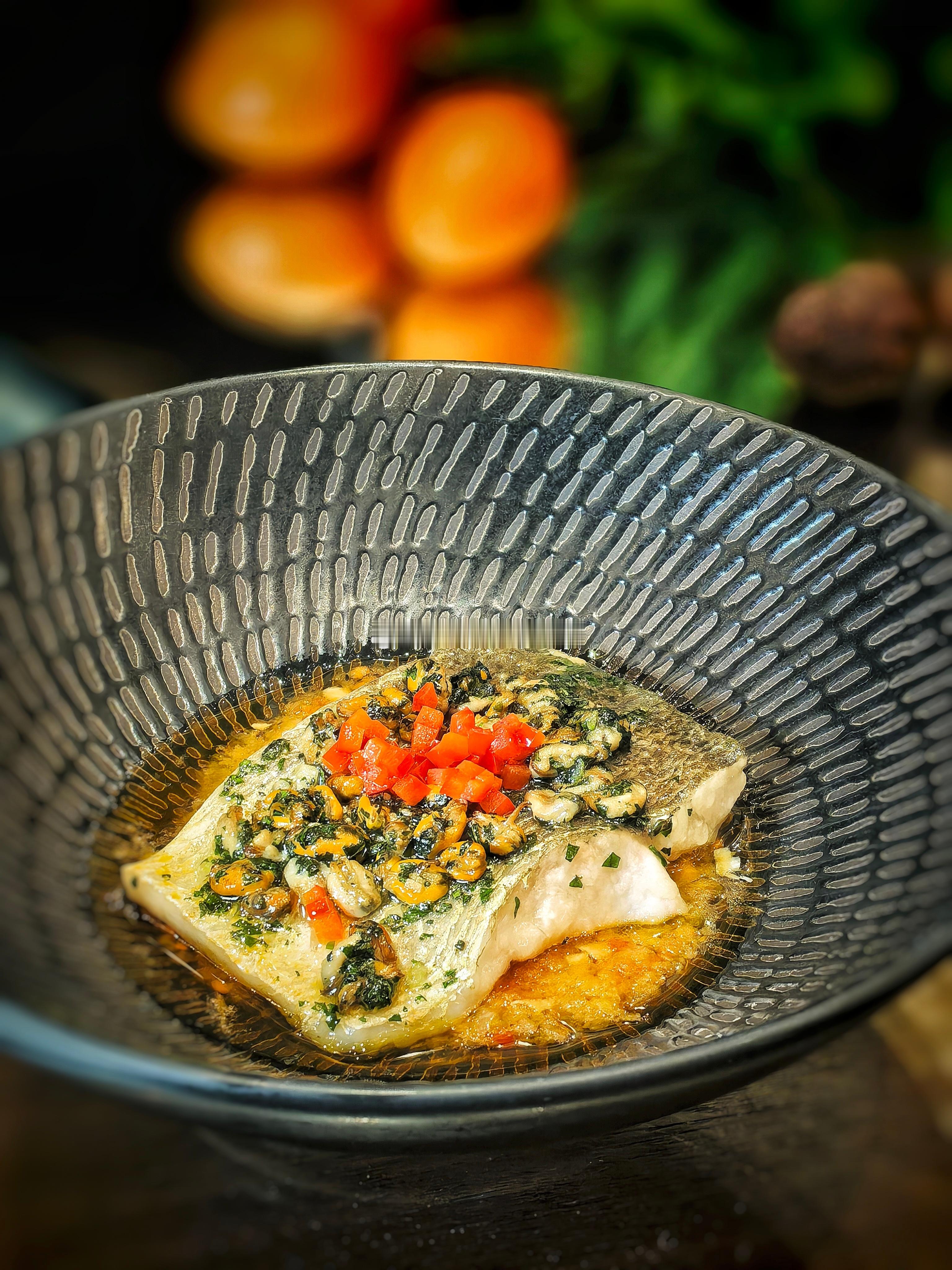 “薄壳米树番茄酱蒸闽东黄鱼”在酸辣咸鲜果香与闽东黄鱼间有了高度平衡,潮汕薄壳肉与轻渍过的闽东黄鱼蒜瓣肉太搭,我居然点了小碗米饭来配,满足!