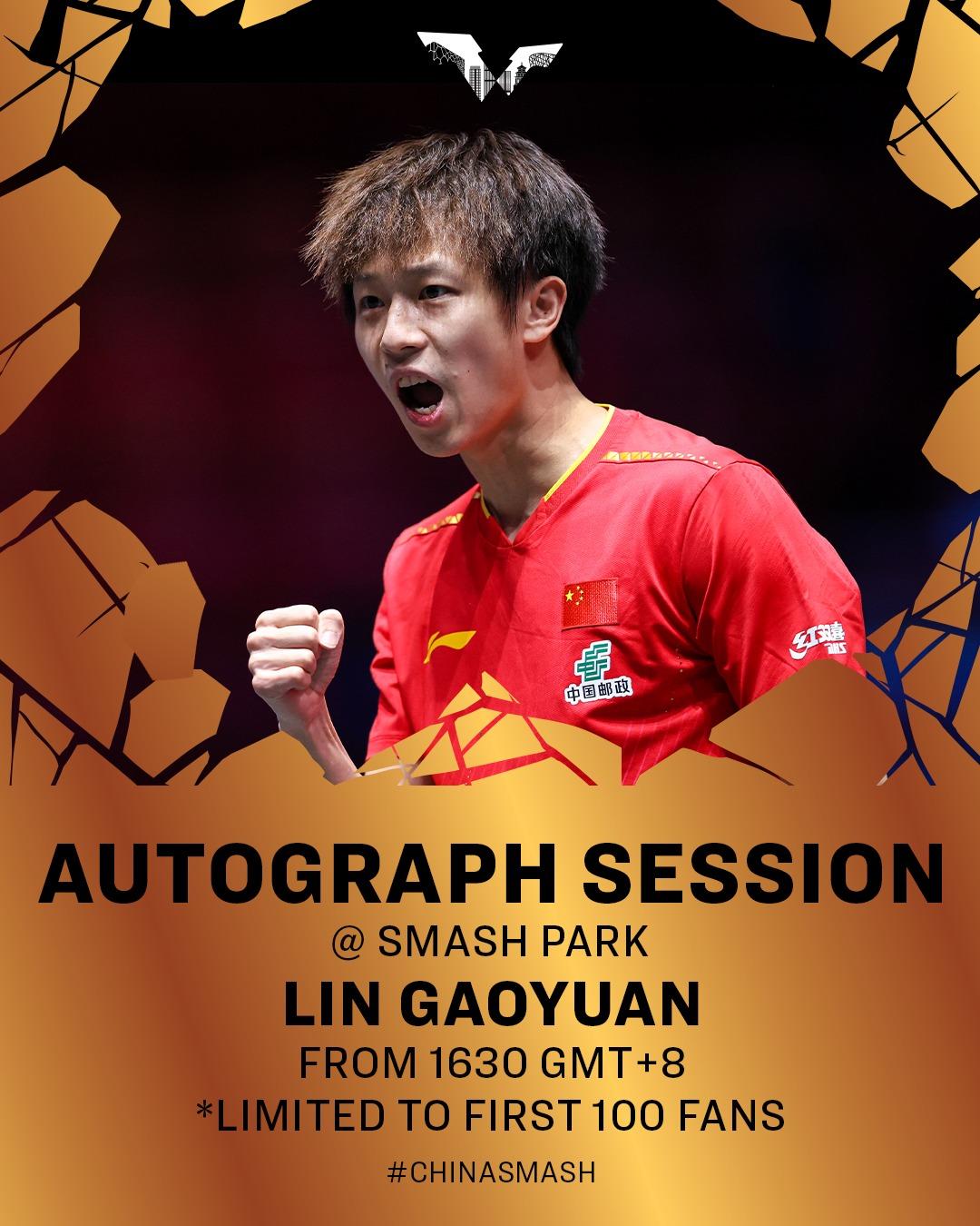 记者WTTins发ins报道,今日将举行林高远签名会,切勿错过!✍10月2日⏰下午4:30(北京时间)#ChinaSmash#TableTennis