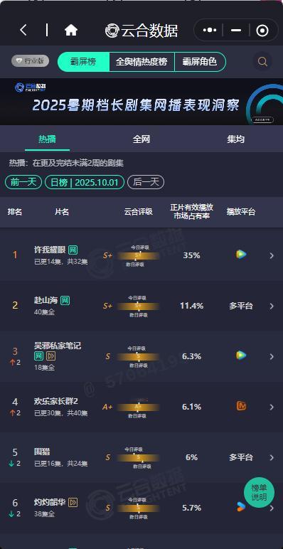 许我耀眼35%持续登顶云合赵露思陈伟霆许我耀眼云合35%