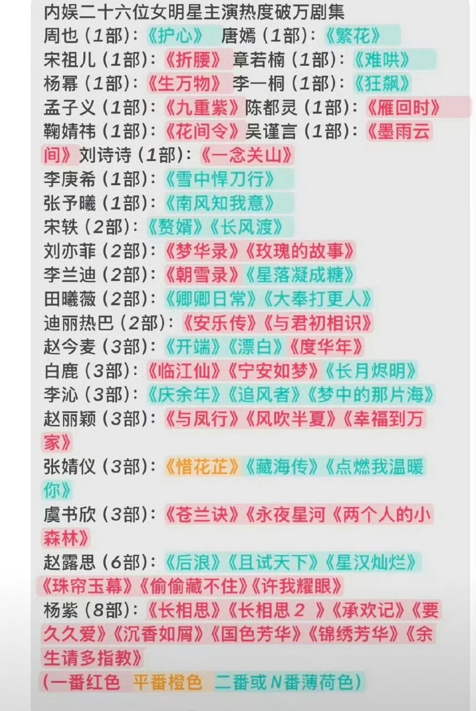 内娱有二十六位女演员热度破万剧集,有你看过的吗? ​​​