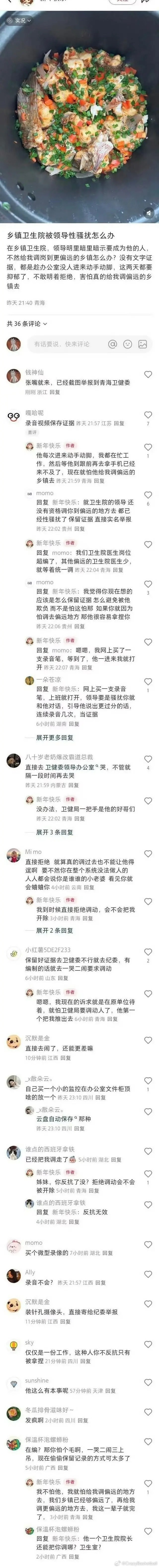 小仙女发帖说自己被乡镇卫生院的领导性骚扰,热心网友说跟当地卫健委联系了,后续你们自己看吧………
