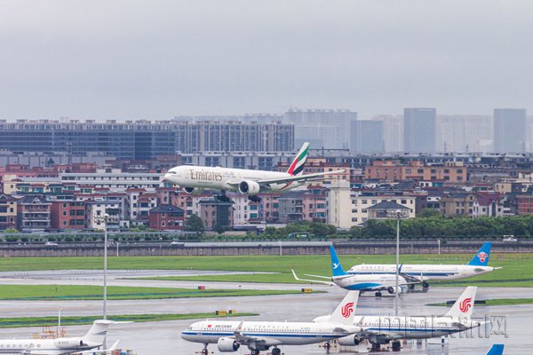 联酋航空迪拜航班落地杭州(杭州机场供图)