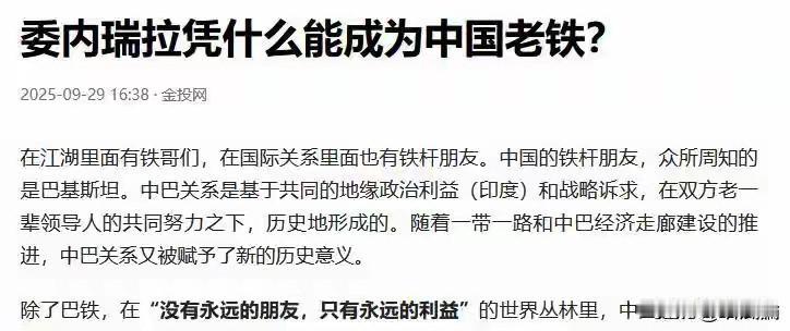 美委海上起冲突,委国跟中国成“铁哥们” 今年9月以来,美国跟委内瑞拉在加勒比海杠上了。9月2号,美军击沉一艘委内瑞拉渔船,说那是运毒船,造成11人死亡。委国政府公布的GPS显示,船是在公海打鱼的。 9月12号,美军驱逐舰又闯进委内瑞拉经济区,扣船8小时。被扣的船长何塞·罗德里格斯说,美国兵拿枪逼他们认罪。之后美军又两次动手,再用集束炸弹炸死13个平民。 委国也没怂,在奥尔奇拉岛搞了“加勒比主权200”大军演,出动2500人,苏-30战机和反舰导弹都拉出来了。 这节骨眼上,9月底,中国跟委内瑞拉成了“全天候战略伙伴”,全球第二个这种关系。之前中国就给委国借了500亿美元买石油,就算美国制裁,中国还每天进口约30万桶油,2024年起直接用人民币结算。 中国帮建的铁路已完成70%,首都80%地区用上了中国援建的自来水。军事上,中国给的雷达也让委国监控能力大涨。 有专家说,委国选中国不是随便站队,是要保住自主性。现在拉美用美元结算的从38%掉到不到15%,人民币占到22%。美国制裁反倒让自家银行被迫卖国债补窟窿。 一句话:小国找活路,大国争地盘,这戏还没完。 委内瑞拉的困境 南美委内瑞拉 委内瑞拉石油战 美陈兵委内瑞拉 智利委内瑞拉 委内瑞拉政坛 委瑞瑞拉局势