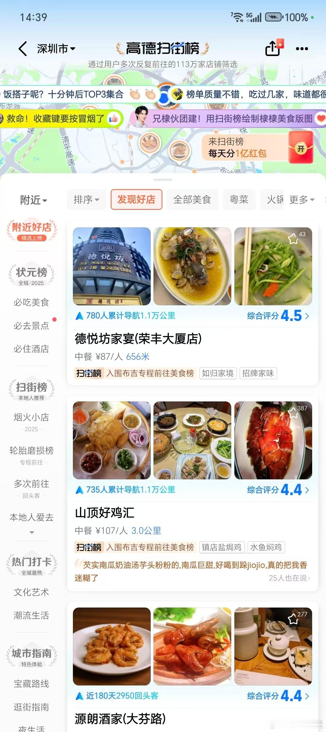 我现在就是无论自驾游还是公共出行,都离不开高德的指引。实时路况、景区拥堵提醒、公共交通查询,一个APP全搞定。就连美食、住宿,高德都能帮我安排得明明白白,直接承包了我们这个国庆的出游版图。这几天也在用高德扫街榜进行寻觅美食,好用的很!