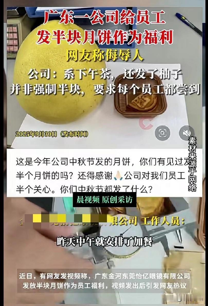 公司发半块月饼作为中秋福利!网友:简直太侮辱人了! 某公司员工发视频称:这是公司