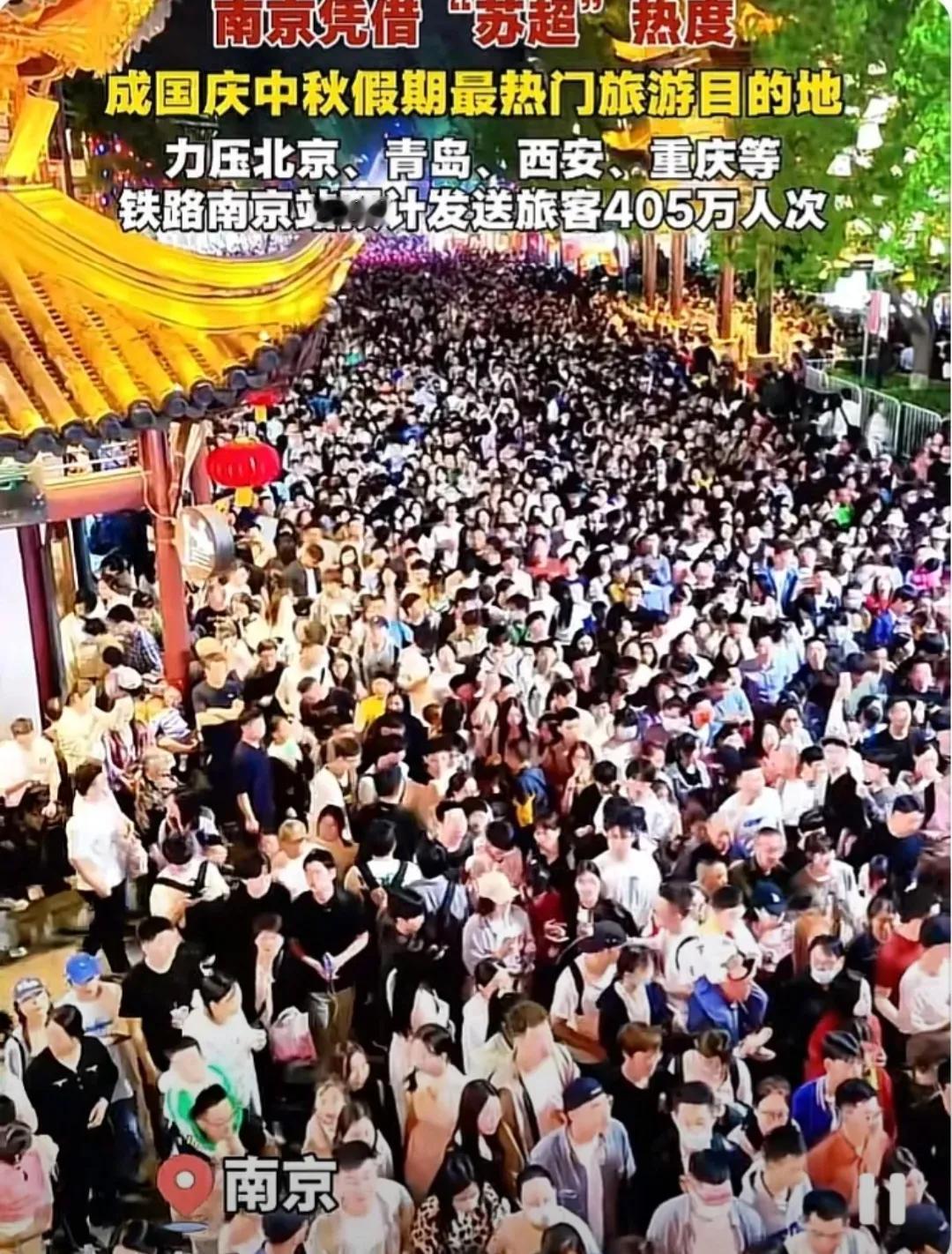 国庆南京现状, 不要太离谱!!! 国庆第一天南京已经人满为患了,特别是夫子庙,放眼望去全是后脑勺,往前挪一步得跟着前面人的脚后跟,想找个插脚的地儿难如登天。 秦淮河边上更夸张,原本想拍个画舫穿桥洞的意境照,结果镜头里全是举着手机的手。 忍不住怀疑:是不是全国一半的人都来南京了? 数据佐证了这份拥挤,首日南京接待游客达232.6万人次,夫子庙更是3天内涌入133万余人次,地铁站3天疏导客流超50万 。外地游客占比近六成,多来自江浙沪皖等周边地区,密集客流集中冲击着热门景区。 背后是南京文旅吸引力的释放,去年国庆全市接待游客1543.8万人次、收入超207亿元,今年热度更胜。警方每日投入2000余名警力,实行分级管控和单向通行,才守住了秩序 。 避开夫子庙等核心区或许是更佳选择。南京75家乡村旅游点假期接待136.3万人次,文博场馆也有81.6万客流,这些地方既能感受文化底蕴,又能躲开人潮。