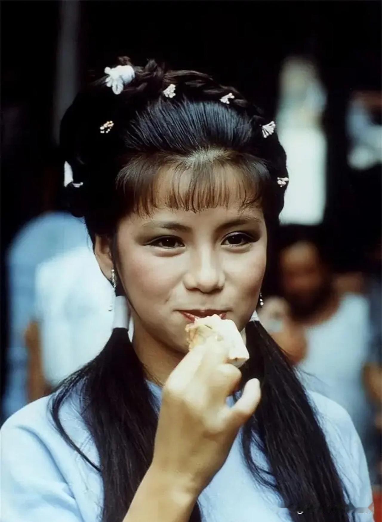 翁美玲《决战玄武门》幕后照📸 柳叶眉、樱桃唇,素雅妆容清丽脱俗,乌黑长发梳成双垂髻,鬓边点缀珍珠发钗,既保留少女灵动,又添古典韵味