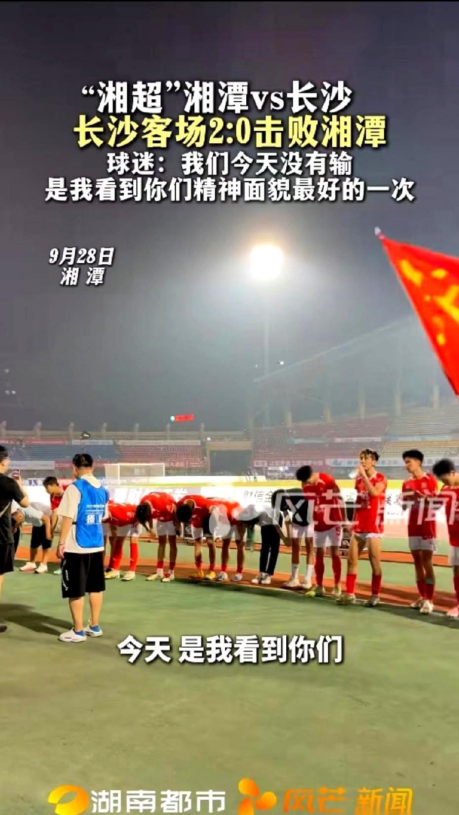 他喊的不是口号,是给儿子的接力棒。 李斌手里那支掉漆的“湘钢必胜”喇叭,2021年发的,现在成了湘潭U17的第二颗心跳。 0:2输了球,可全场跑动112.8公里,抢断19次,预期进球还比对手多——球没进,但血没凉。 他把喇叭寄给长沙集训的儿子,没写“加油”,只说:“下次你上场,带回来,我们一起喊赢。 ” 没人逼他这么做。 可全城都听见了。 足协连夜定下“血性主场”,门票秒光,看台要加座; 一中语文老师把弹幕贴满走廊,粉笔字写着:“胜负写在记分牌,血性写进人生。 ” 这届小孩没身高,没运气,但有腿。 有爹在看台喊到嘶哑的腿。 有教练盯着数据说“没输”的腿。 有孩子明天可能替补上场,带着那只喇叭冲进禁区的腿。 输球那天,湘潭没人哭。 他们把“没输”喊成了新信仰。 下一场,球门在等他们。