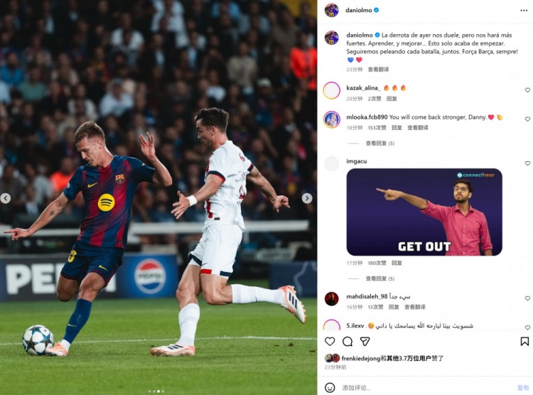 奥尔莫也在个人社媒晒照鼓励球队,写道:“昨天的失败令人痛心,但它会让我们更加强大。我们必须学习,不断进步,这仅仅是个开始。我们将继续并肩作战,迎接每一场战斗。巴萨加油!”