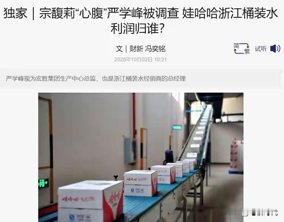 娃哈哈“心腹”被查,桶装水利润迷局才是关键?宗馥莉的“左膀右臂”严学峰被立