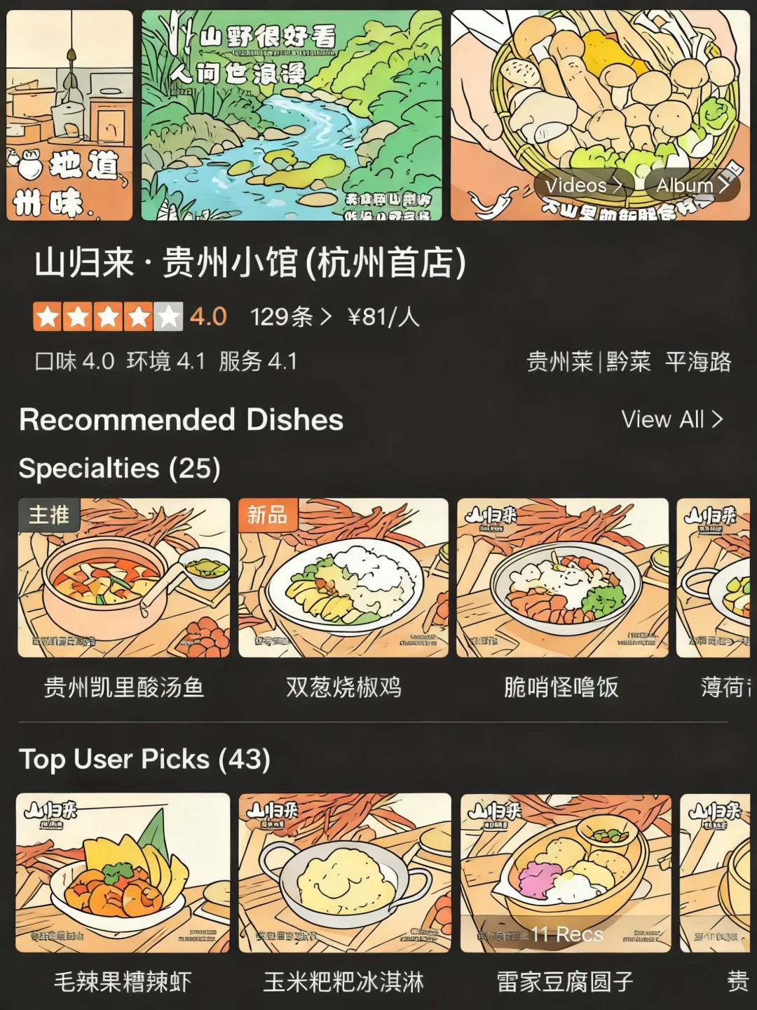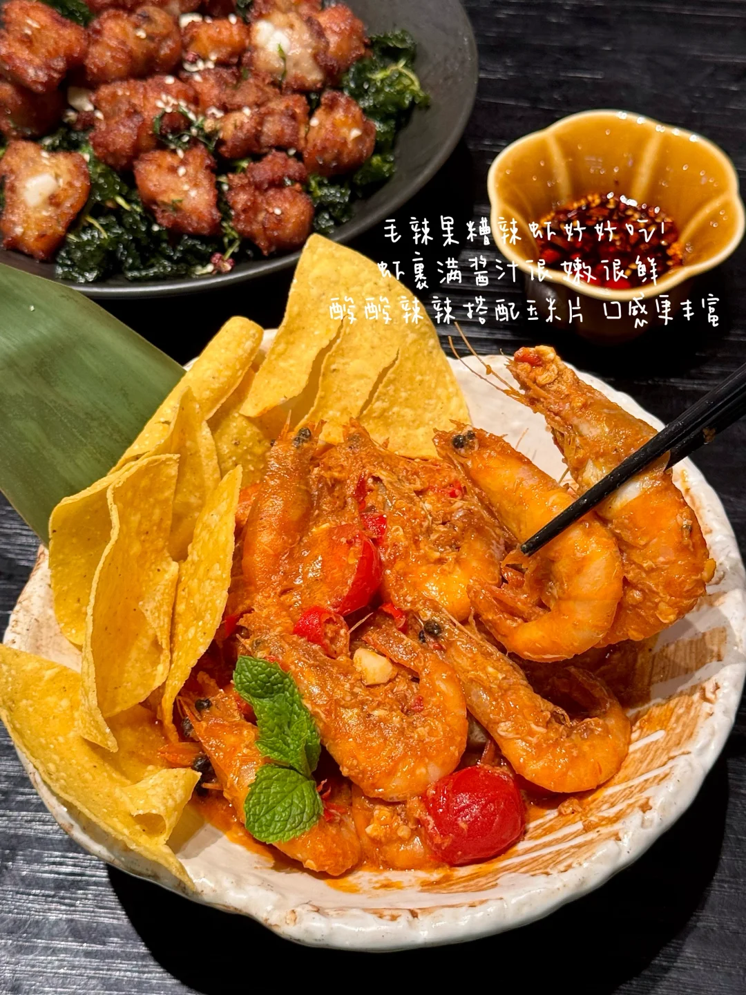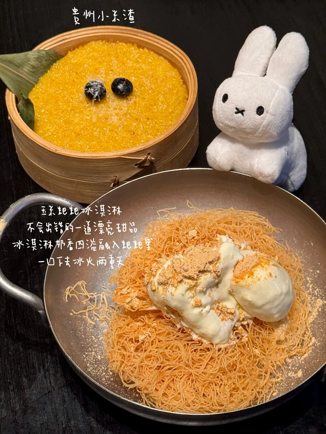 饭点来基本都是满座..…我愿称之为贵州菜里的平价漂亮饭!毛辣果糟辣虾酸辣入味,配上玉米片绝了…凯里酸汤鱼 上桌我汤都直接连炫了三碗!还有怪噜饭、玉米粑粑冰淇淋、小米渣……每个菜都特色又好吃~