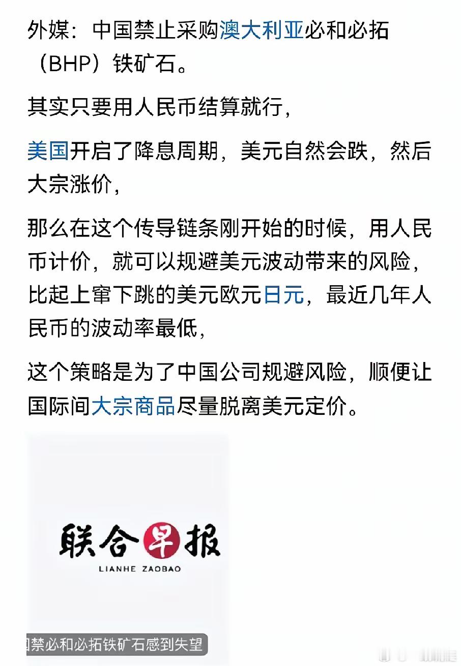 很多人没有理解与用人民币结算的意义。澳大利亚,美国核心盟友,是美元体系的主要支柱。现在就是在要求站队,否则澳大利亚就会被踢出中国构建的国际贸易体系。