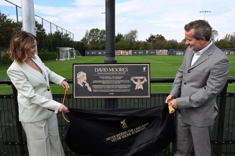 为了纪念2022年7月去世的前利物浦主席和老板大卫-摩尔斯,柯比学院正式揭幕了一块纪念牌。摩尔斯在76岁时离世,他在俱乐部服务了16年,为球队做出了巨大贡献。
