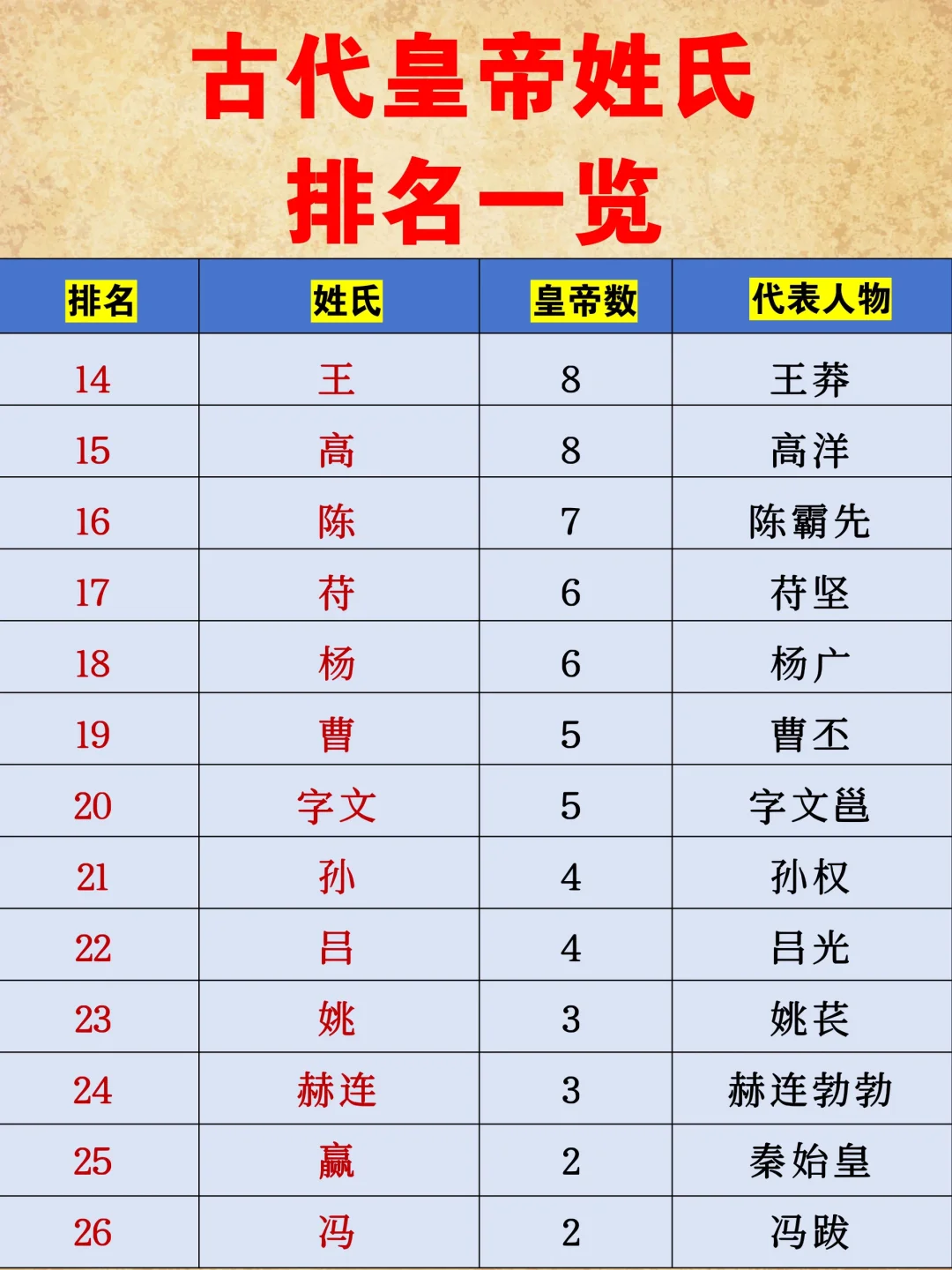 👉大汉的刘氏、大宋的赵氏、大唐的李氏、大明的朱氏以及大清的爱新觉罗氏,皆属于强大的王朝,存在时间长达数百年之久,这几个姓氏诞生的皇帝相对较多。