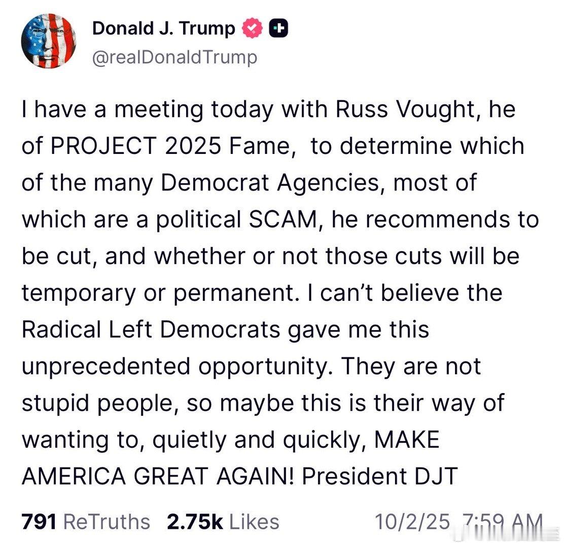 2025年10月,Trump本人:我要实施2025项目,简直难以置信民主党会给我这个千载难逢的机会