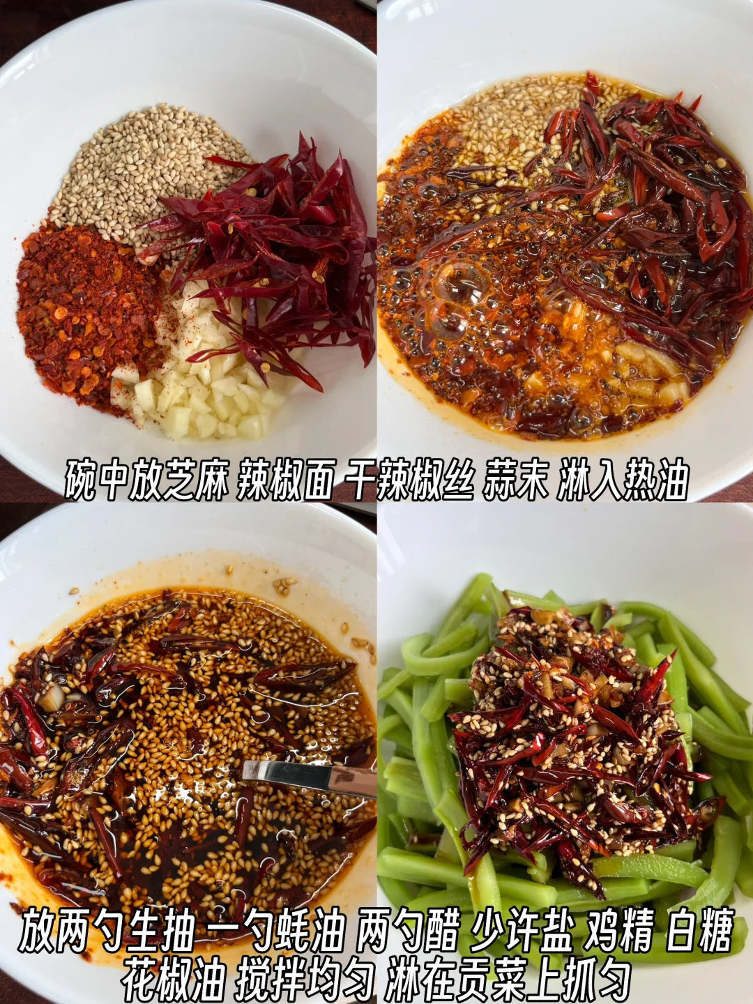 附做法: 1️⃣干贡菜泡发后洗净,切小段;锅中烧水,水开下贡菜,煮十几秒钟(时间上了就不脆了)就捞上来,过凉控干水分备用 2️⃣碗中放芝麻、辣椒面、干辣椒丝、蒜末,淋入热油,放两勺生抽、一勺蚝油、两勺醋、少许盐、糖、鸡精、花椒油搅拌均匀 3️⃣调好的料汁淋在贡菜上,抓拌均匀✅ -