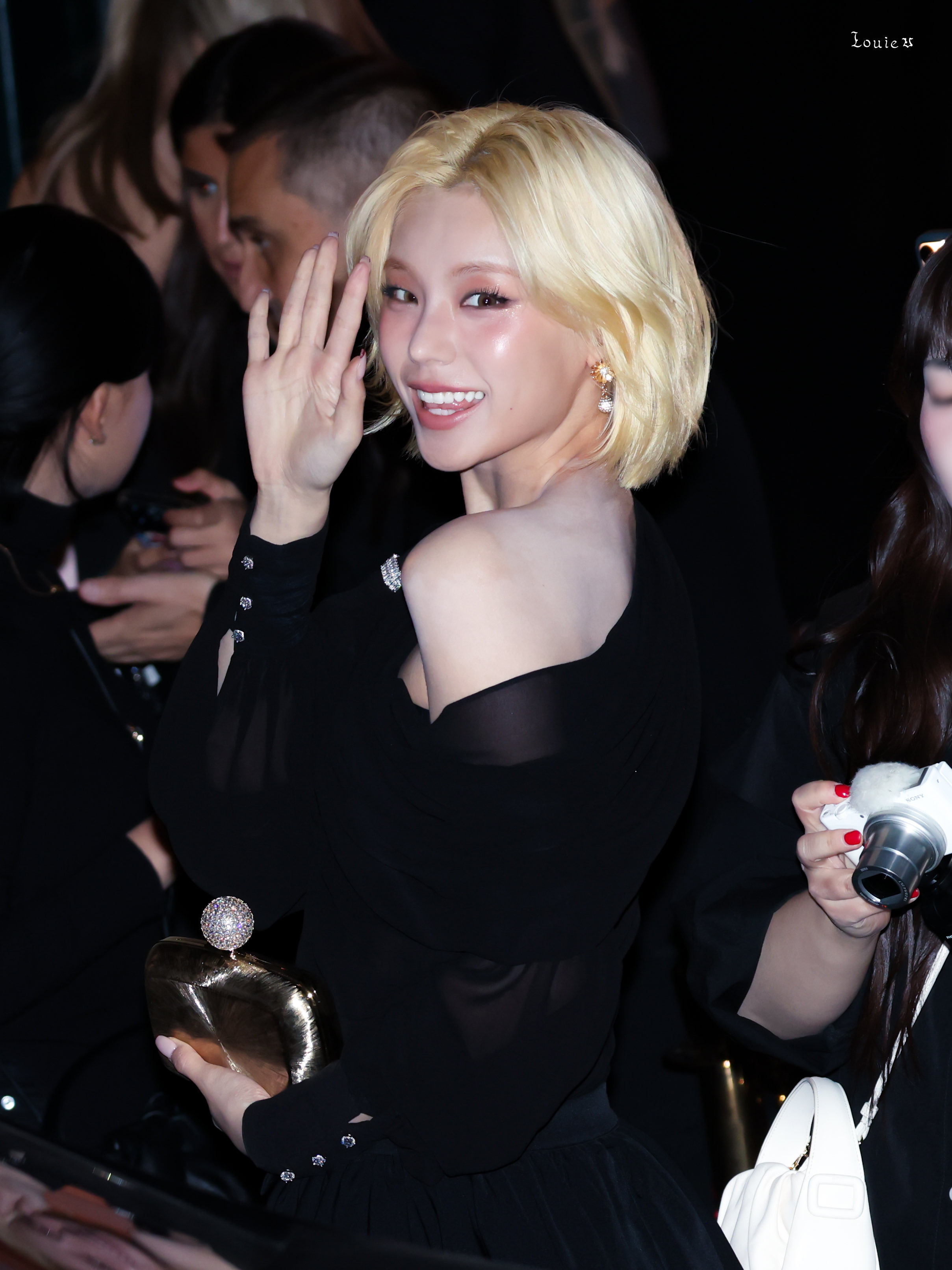 巴黎时装周今天的黄礼志MaisonVivier晚宴造型,夜幕下的金发女神💫