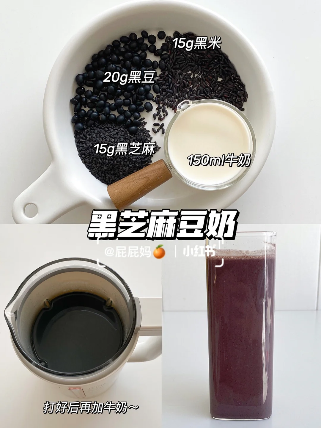 20g黑豆 15g黑米 15g黑芝麻 150ml牛奶
