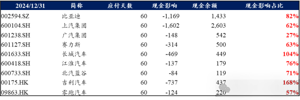 有人担心这会不会有风险?看“应付账款周转天数”(就是欠供应商钱多久还),比亚迪在国内车企里算中等,比上汽、长安、理想还快,比小鹏、北汽这些好多了。而且就算把所有车企的“欠款”都调成60天内还,比亚迪的现金流还是最好的——别的车企可能扛不住,比亚迪还能活的很滋润,这说明它对供应链的把控力强,能靠供应商的钱周转,自己的现金留着搞研发、扩产。