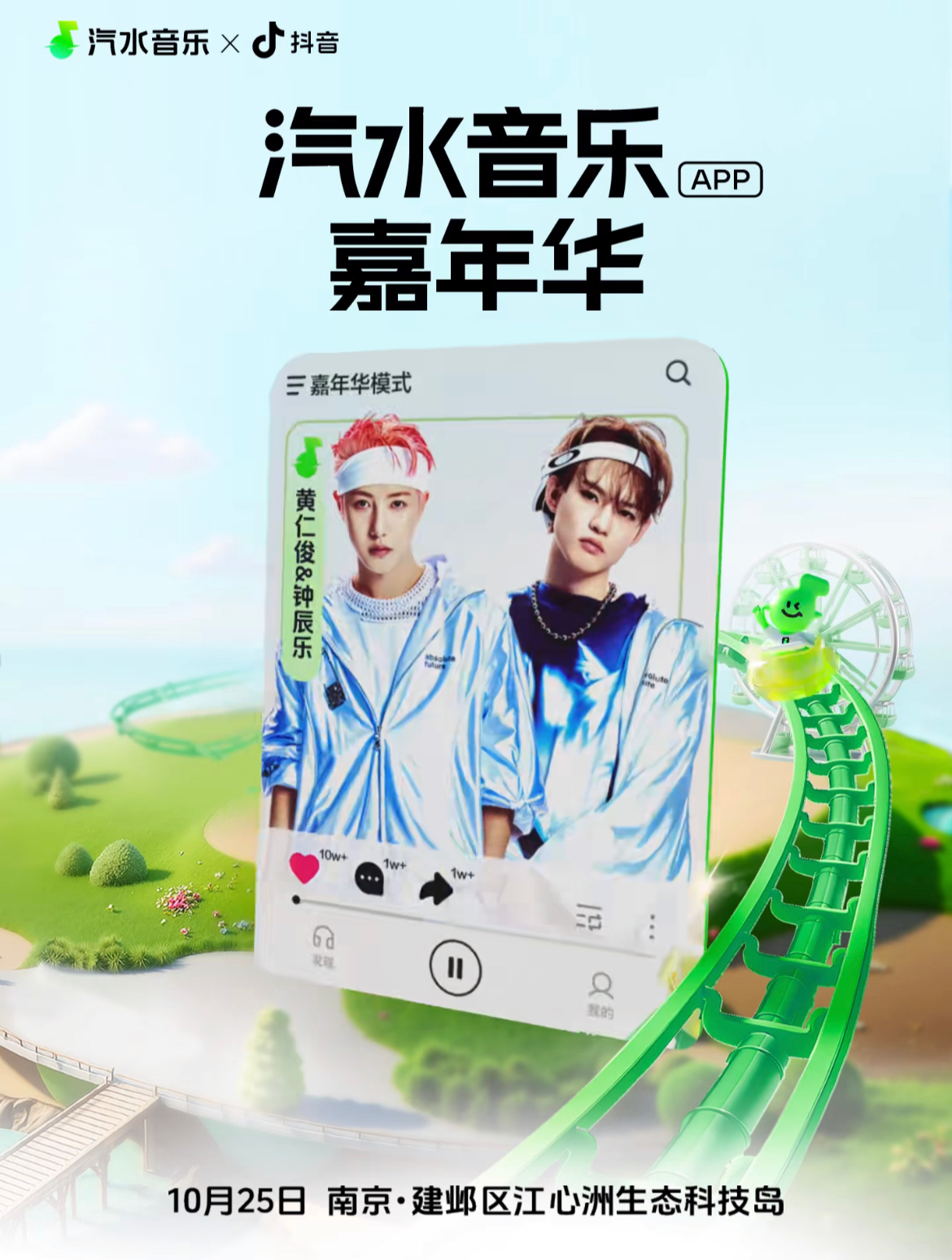 黄仁俊钟辰乐官宣汽水嘉年华音乐节期待精彩舞台!⏰10.25